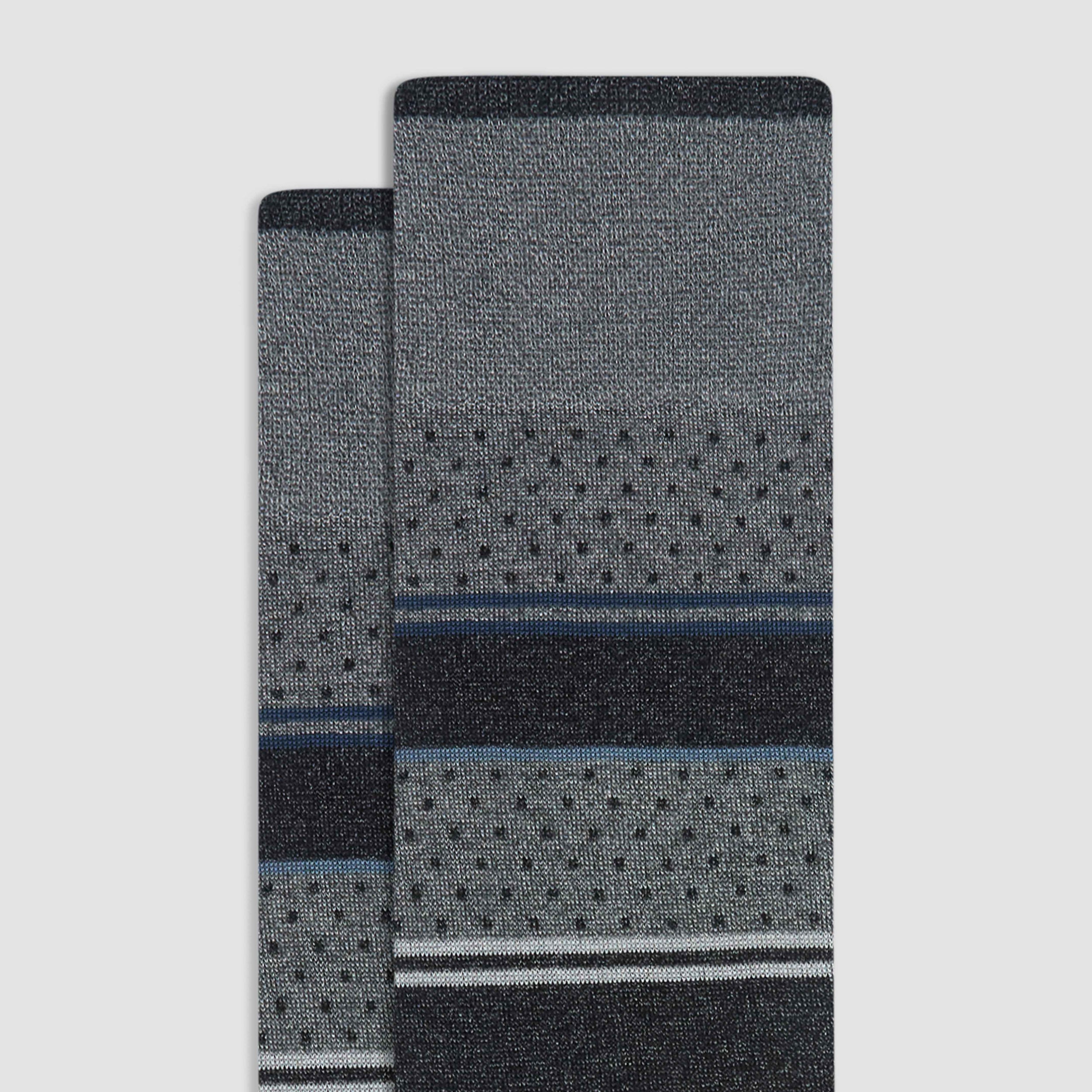 Discover premium comfort with these stripes and dots mid-calf socks, made in Italy from luxurious mercerized cotton with a ribbed cuff for a snug fit, a hand-linked toe for smoothness, and reinforced heel seams for added durability. Soft, breathable, and designed with care, they bring a touch of Italian flair to casual and formal wear.