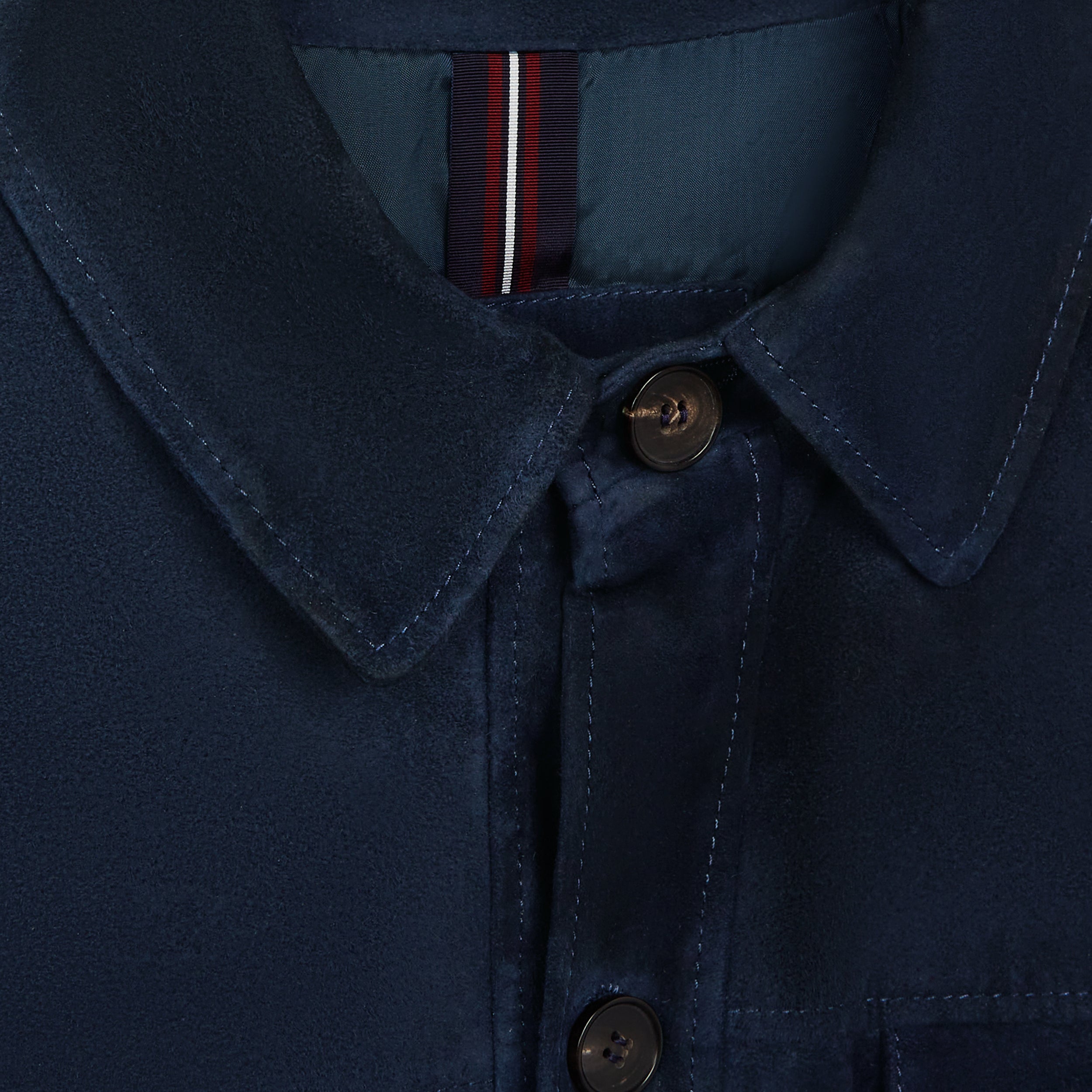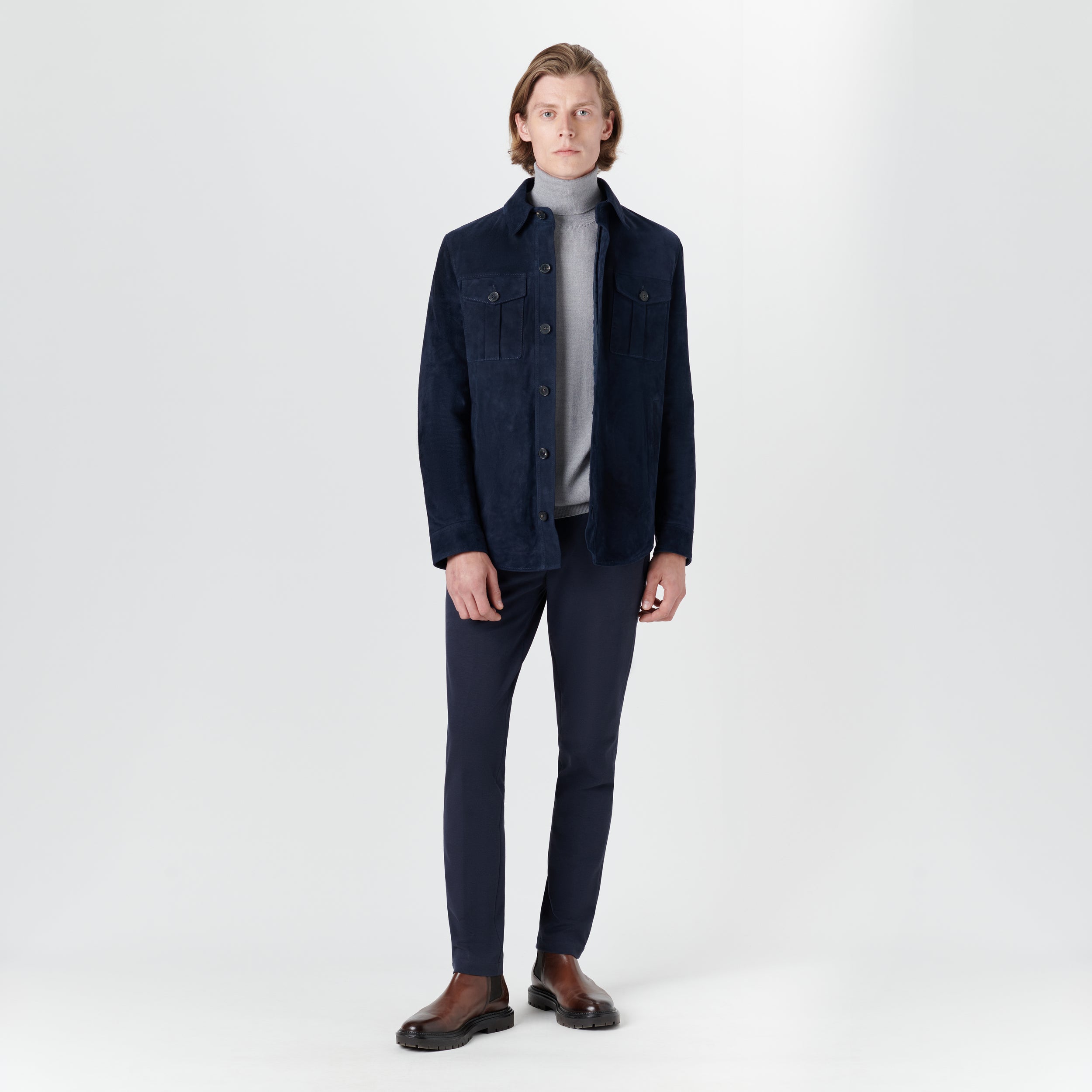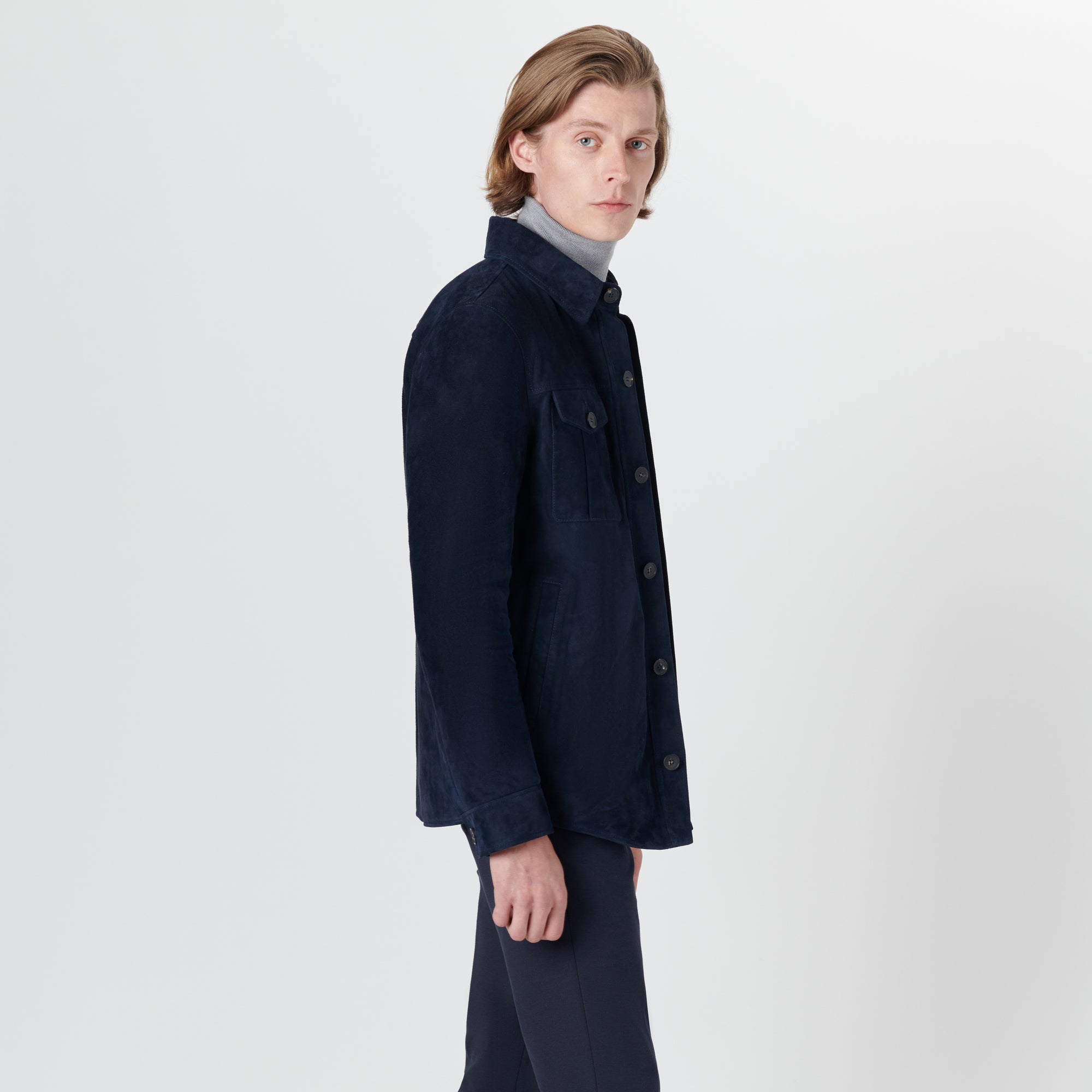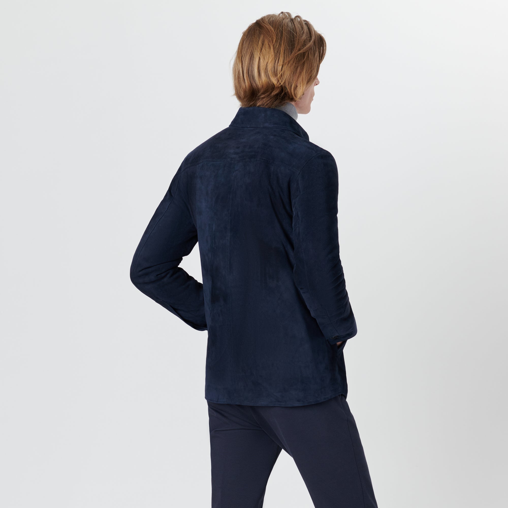 Shirt jacket in 100% suede with point collar, full button closure, two chest pockets with buttoned flap and two slanted side pockets.