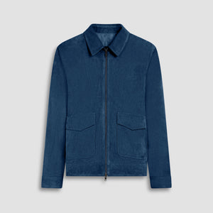 Trucker jacket in 100% goat suede with two-way zipper closure and patch pockets with flap.