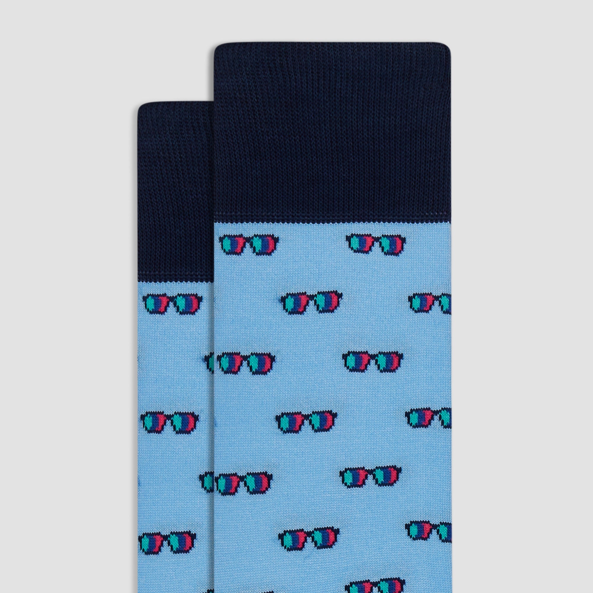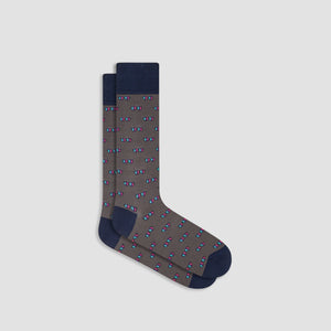 Sunglasses mid-calf socks in fine gauge mercerized cotton blend with rib knit cuff band, hand linked toe and reinforced heel seams. Made in Italy.