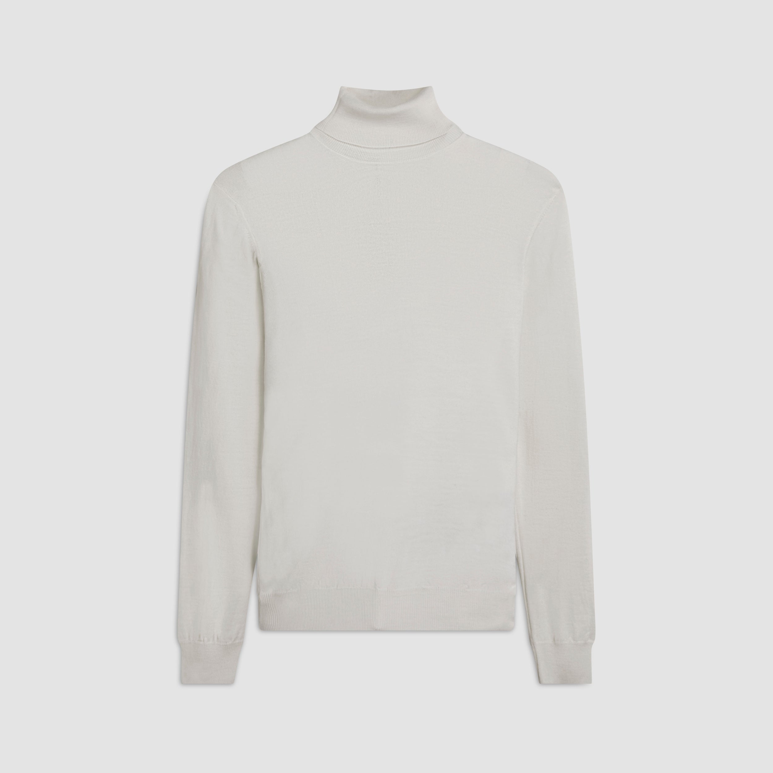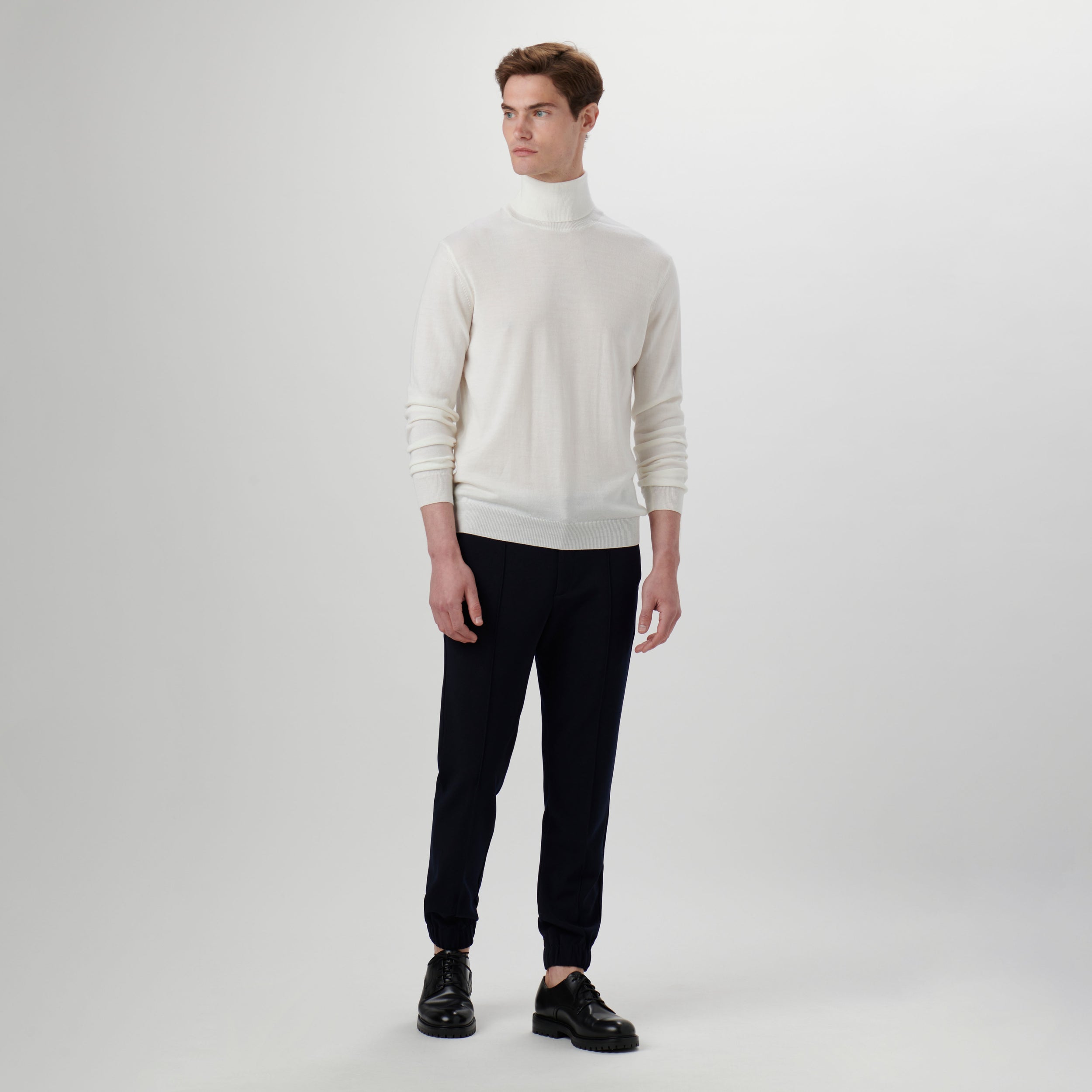 Solid pullover sweater in 100% extra fine merino wool with Harmony 4.0 special finishing and rib knit turtleneck, cuffs and waistband. This sweater is made with a high twist yarn that is breathable, hygroscopic, water repellent, machine washable and crease proof for long lasting performance wash after wash. Made in Italy.