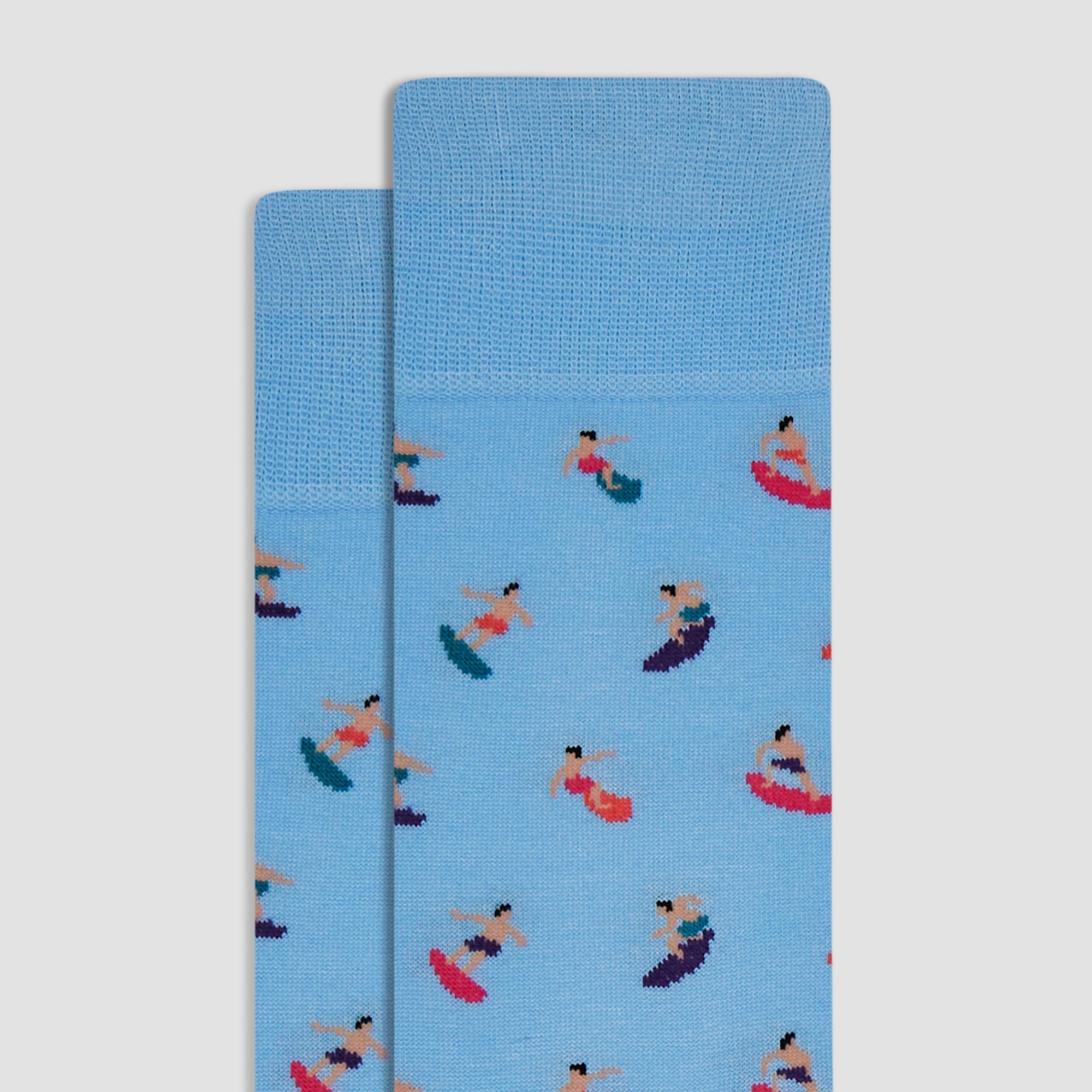 Surfers mid-calf socks in fine gauge mercerized cotton blend with rib knit cuff band, hand linked toe and reinforced heel seams. Made in Italy.