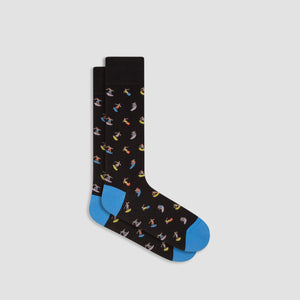Surfers mid-calf socks in fine gauge mercerized cotton blend with rib knit cuff band, hand linked toe and reinforced heel seams. Made in Italy.