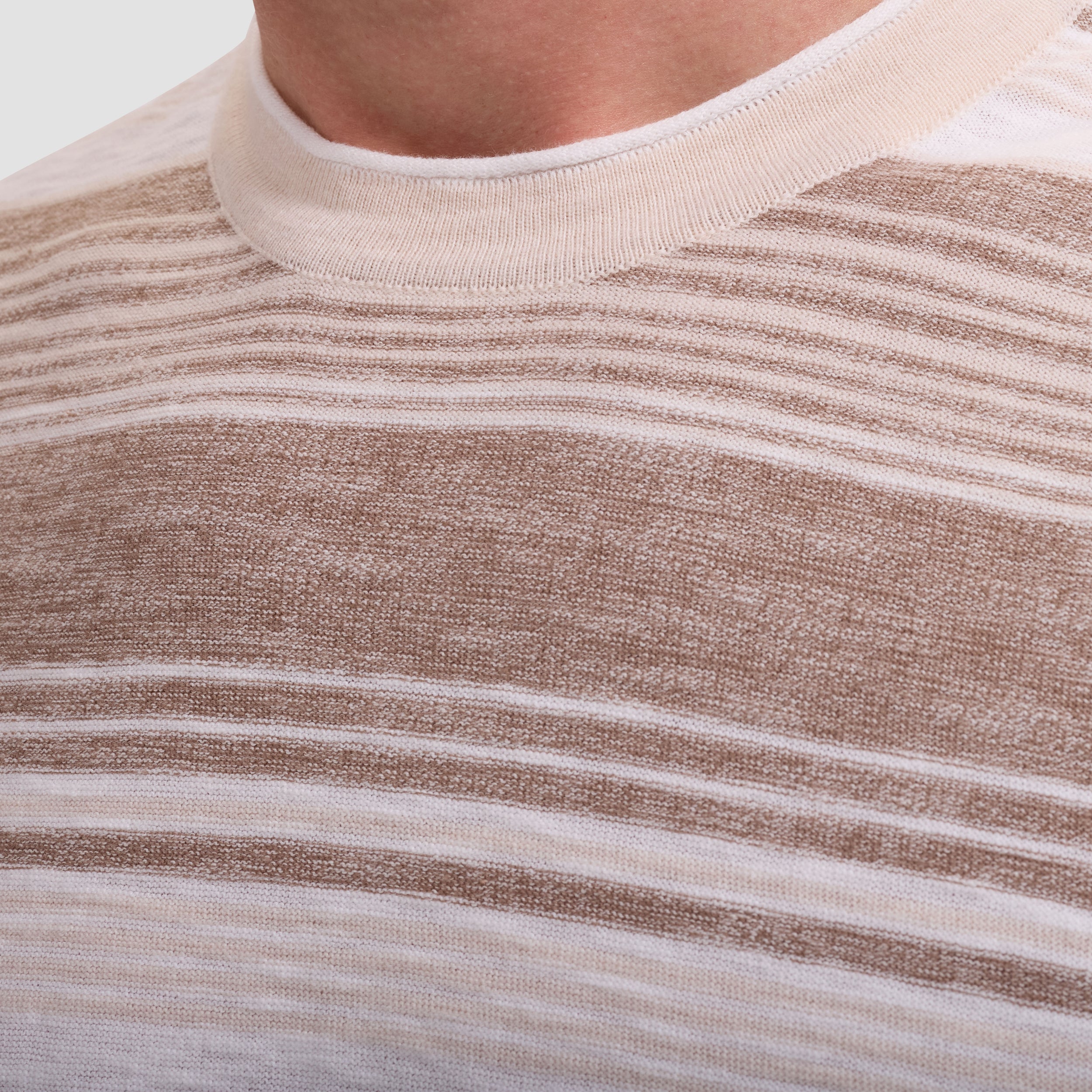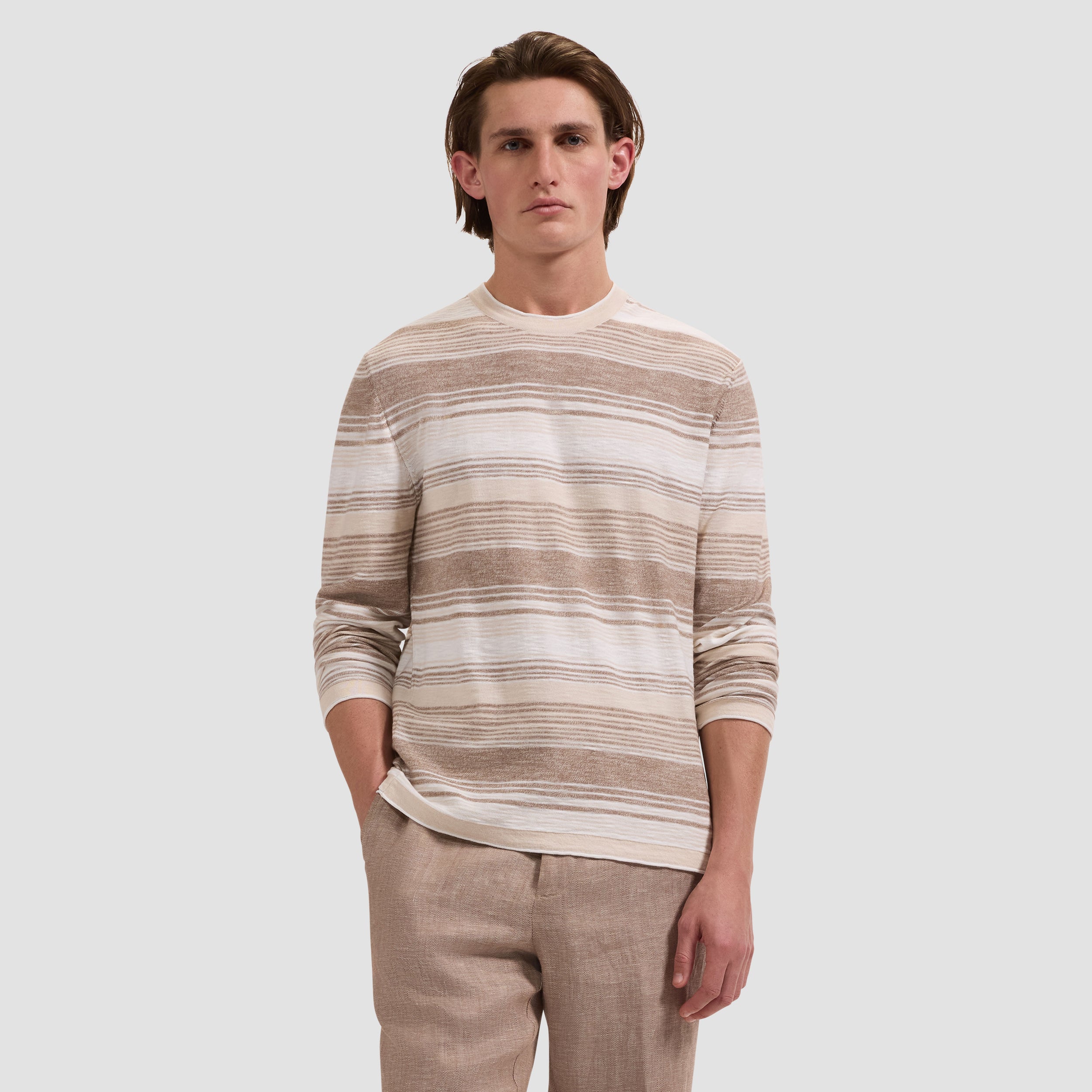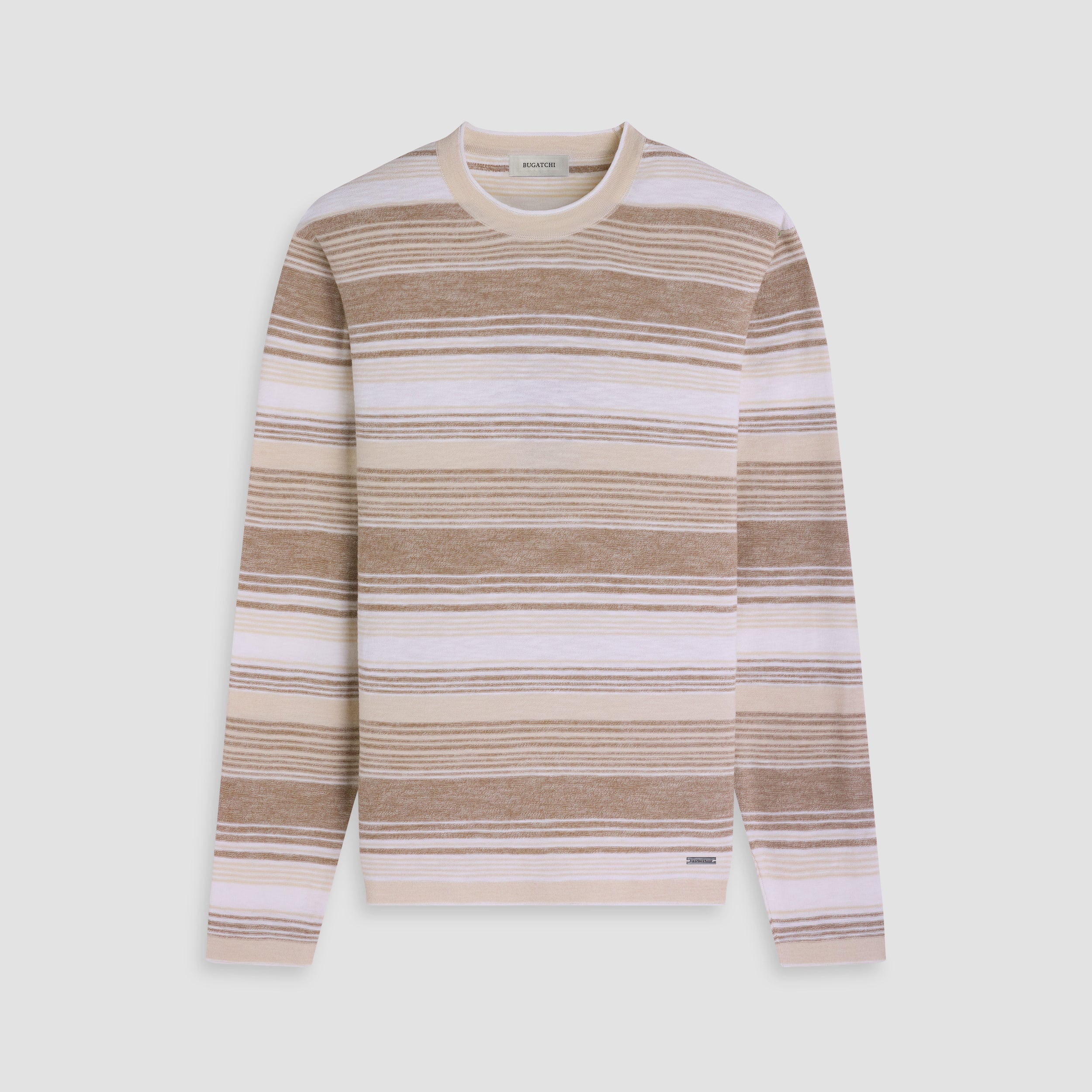 Crafted from 100% cotton, this lightweight crewneck sweater features a soft, heathered finish with tonal horizontal stripes for a relaxed yet refined look. Designed with a classic crew neckline and clean cuffs, it offers effortless versatility—ideal for layering or wearing on its own across seasons.