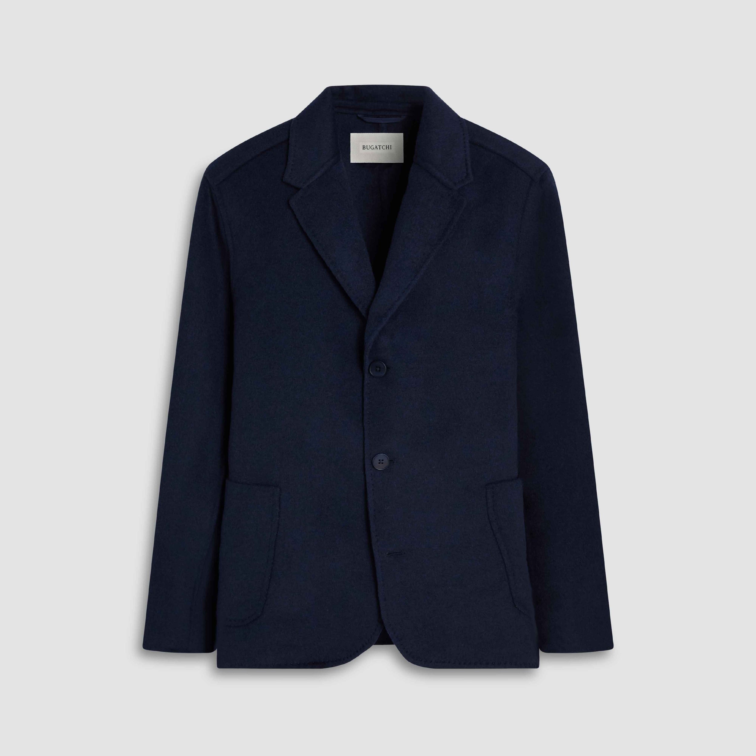 Crafted from a brushed wool blend for a soft, textured feel, this three-button blazer features a classic notched lapel and eco-friendly corozo buttons. Thoughtfully designed with spacious patch pockets that include side entry for added functionality, it balances refined style with practical appeal.