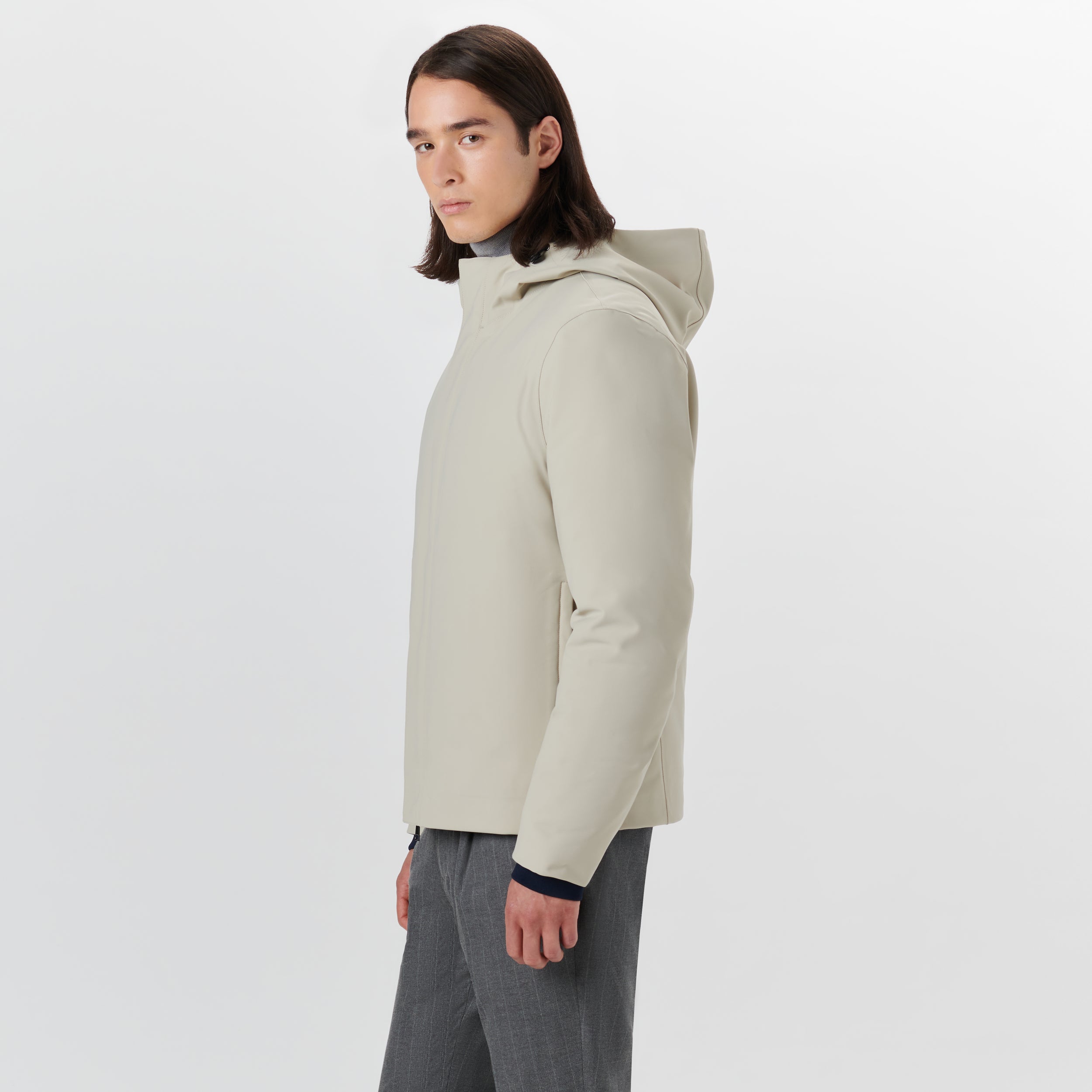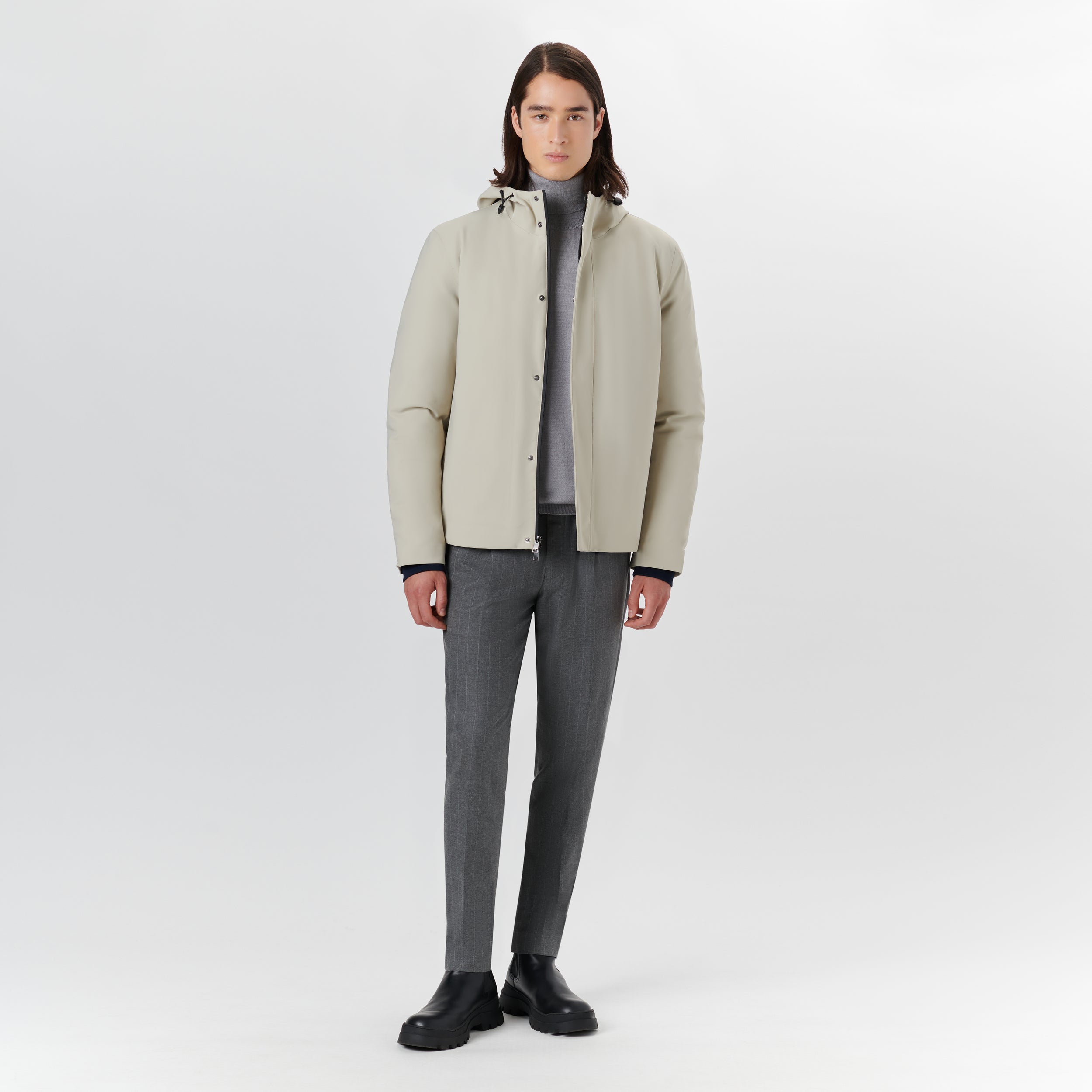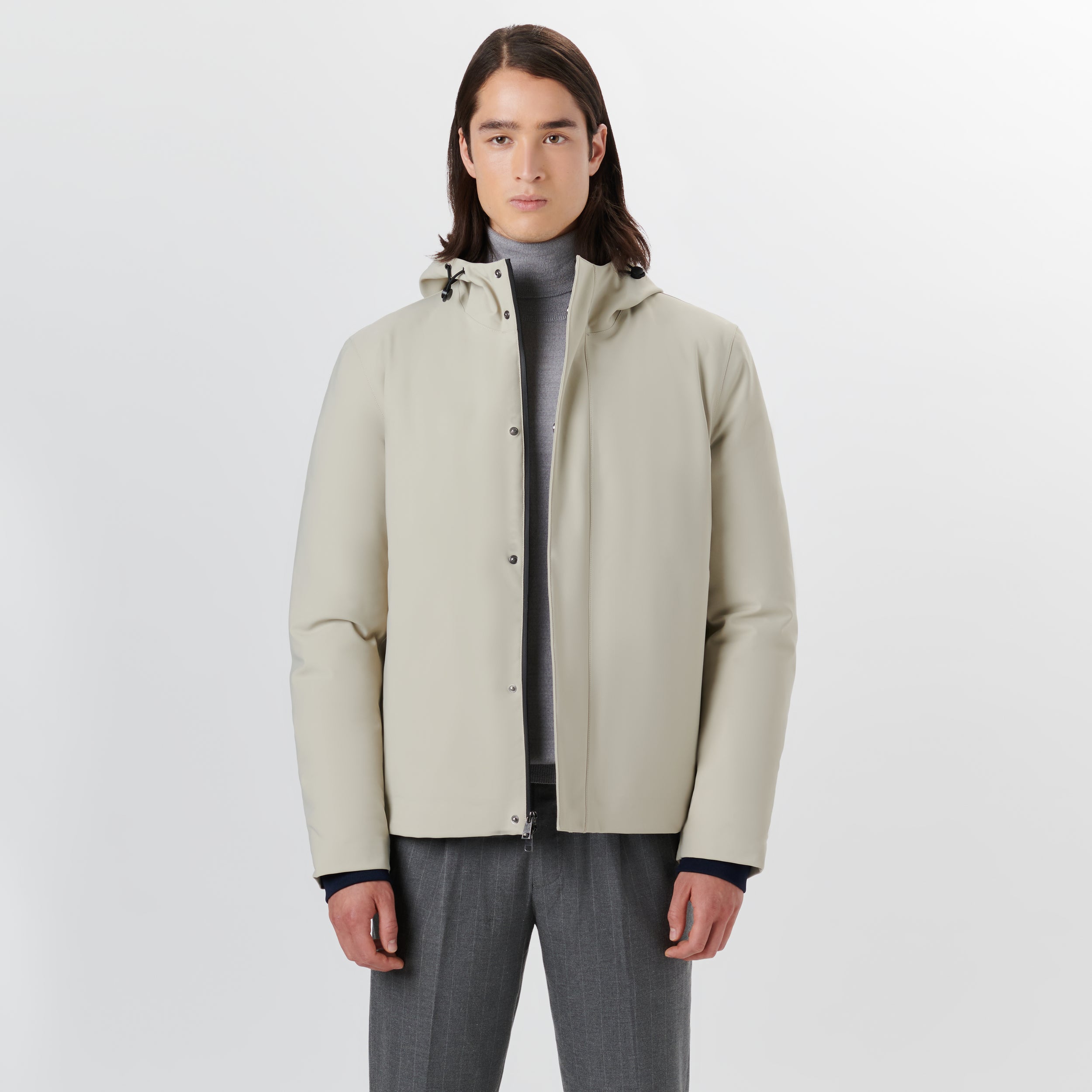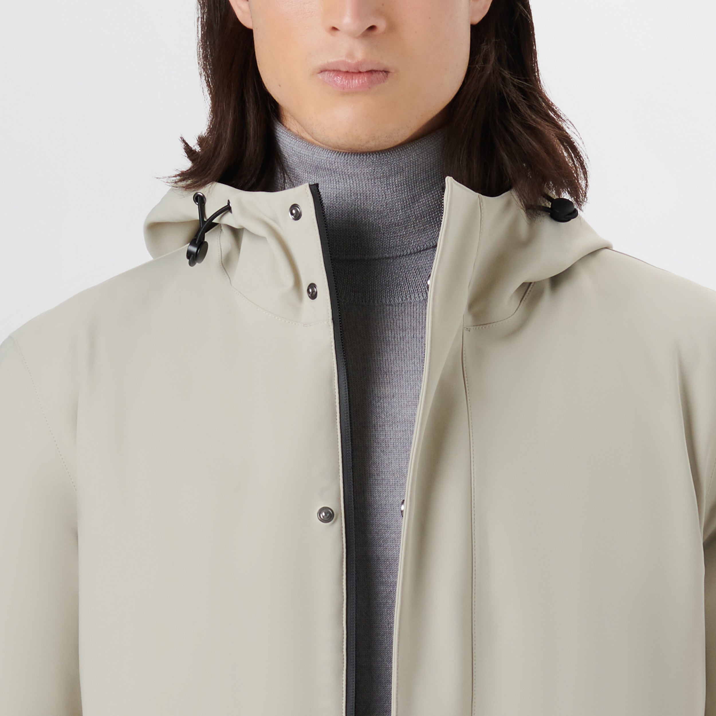 Water repellent 3 in 1 jacket with adjustable drawstring hood, two-way zipper closure with covered placket, elasticized inner rib knit cuffs and slit side pockets