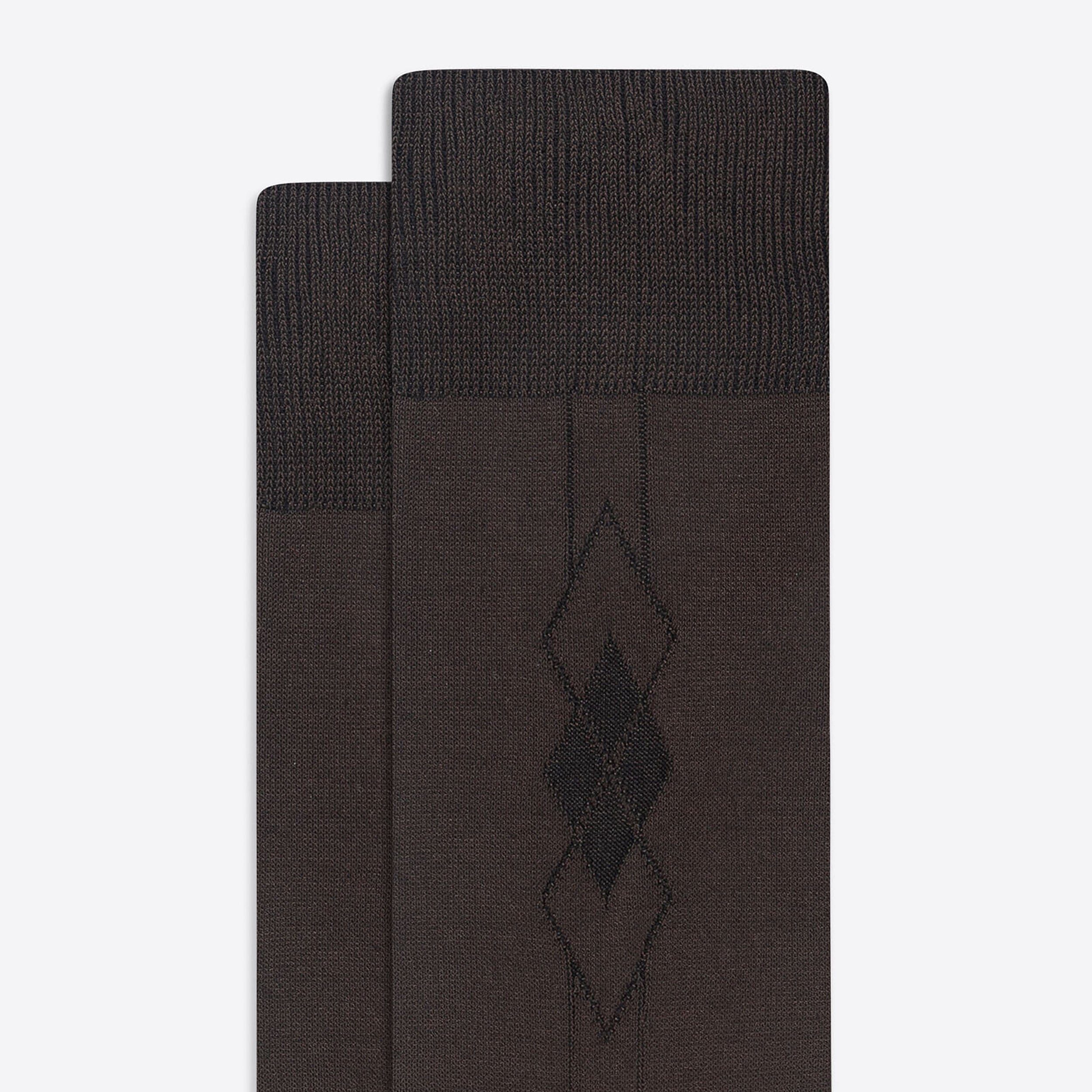 Tonal Diamond Cluster mid-calf socks in fine gauge mercerized cotton blend with rib knit cuff band, hand linked toe and reinforced heel seams. Made in Italy.