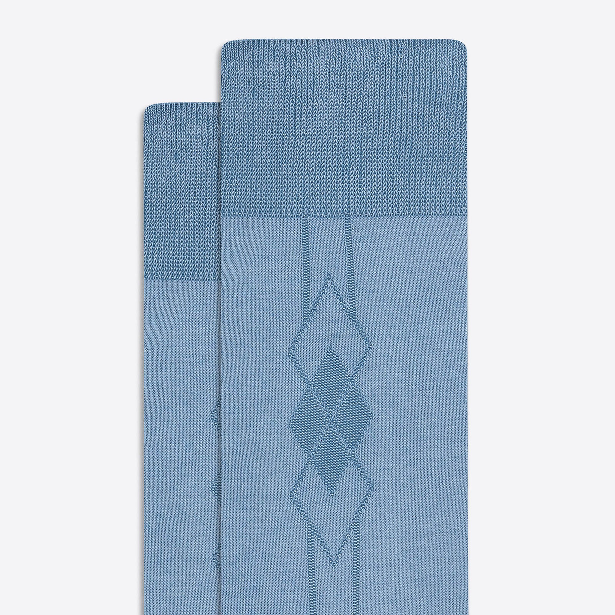 Tonal Diamond Cluster mid-calf socks in fine gauge mercerized cotton blend with rib knit cuff band, hand linked toe and reinforced heel seams. Made in Italy.