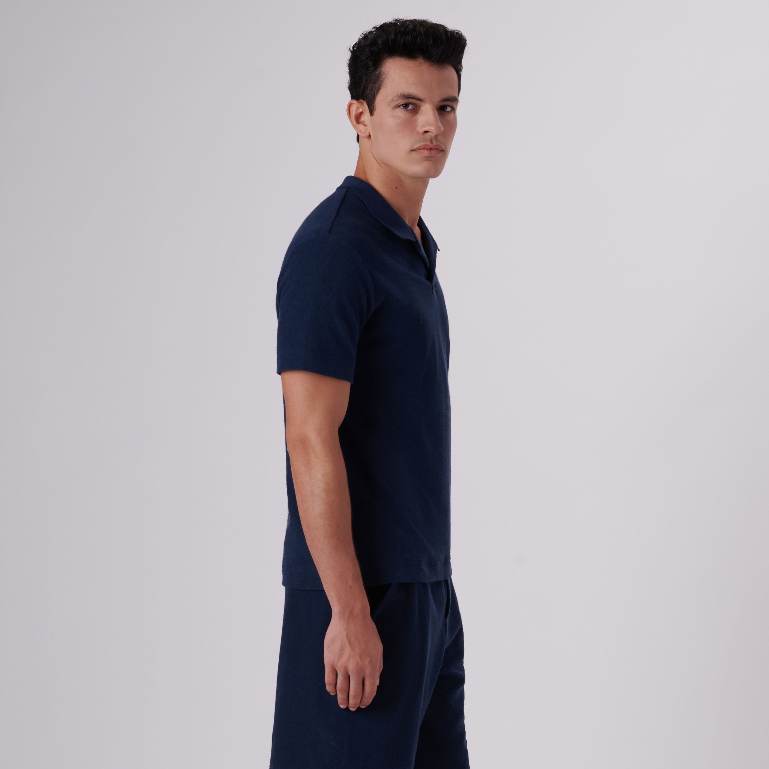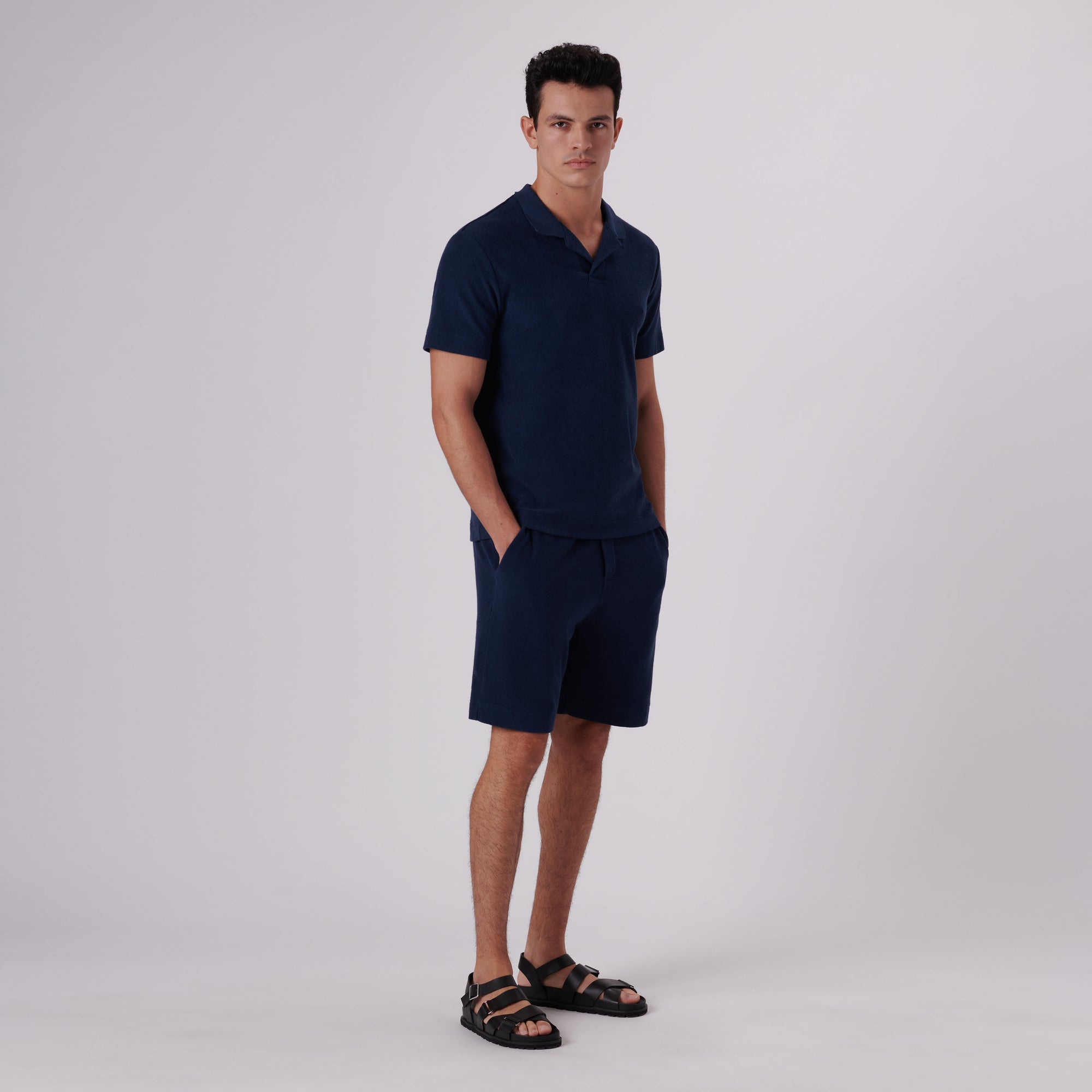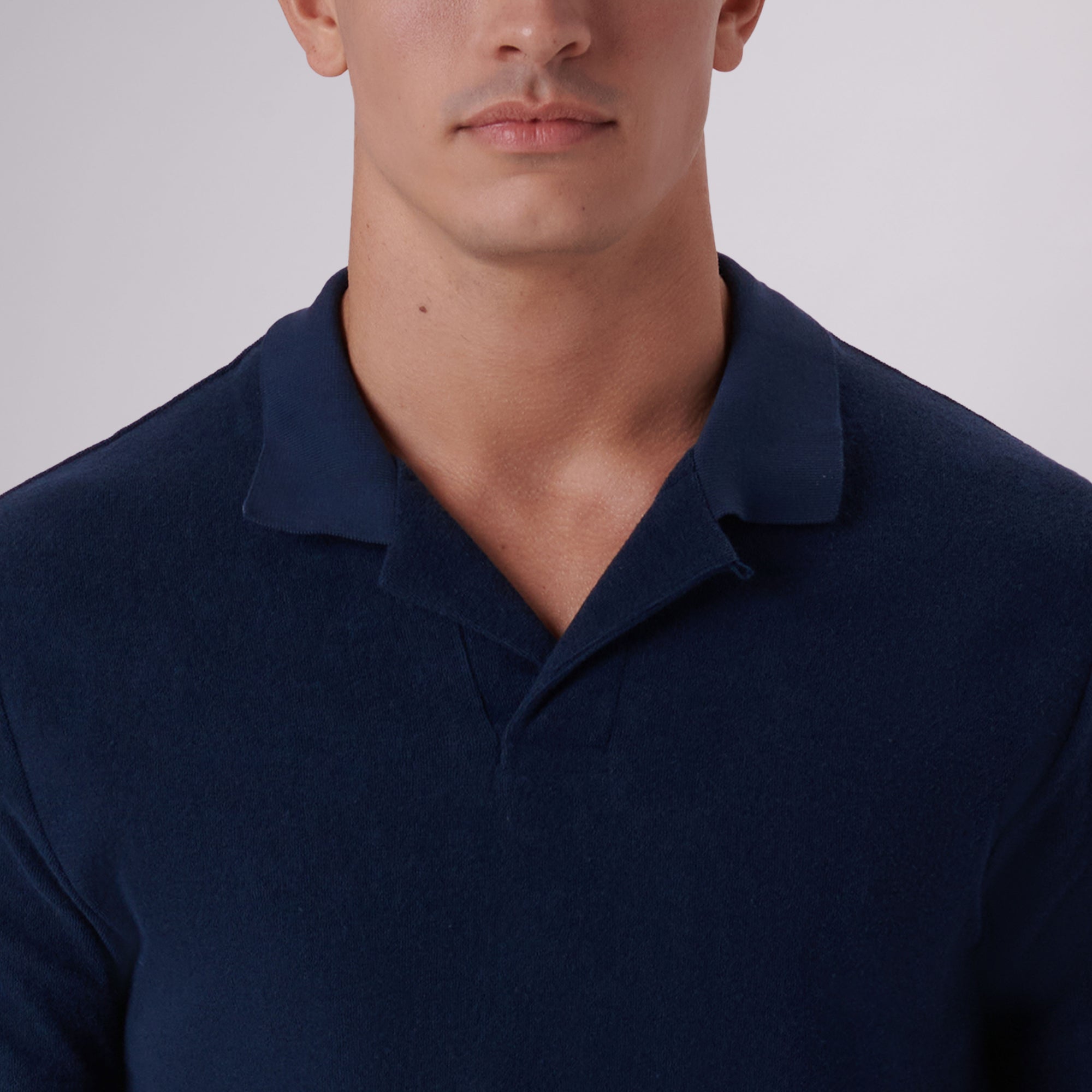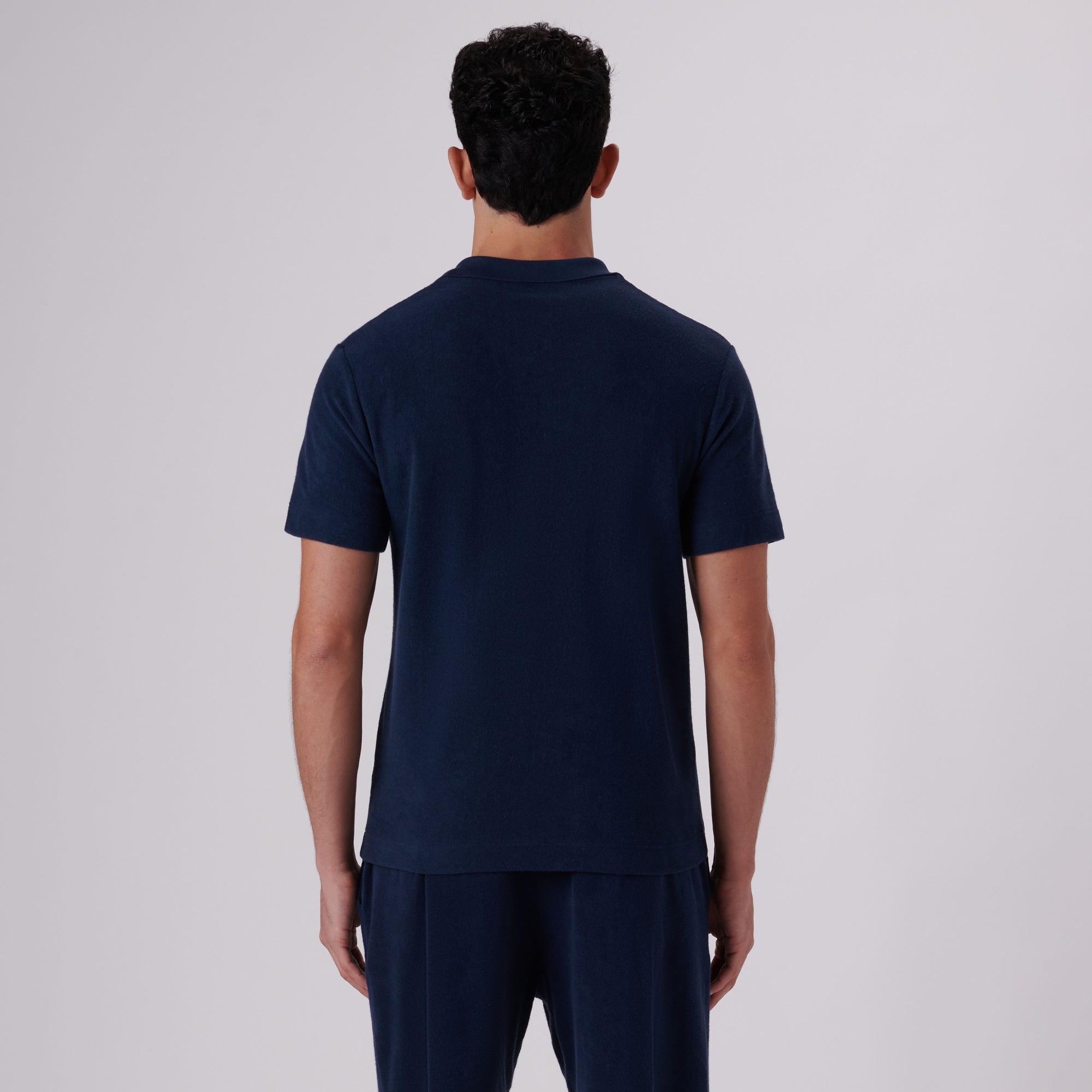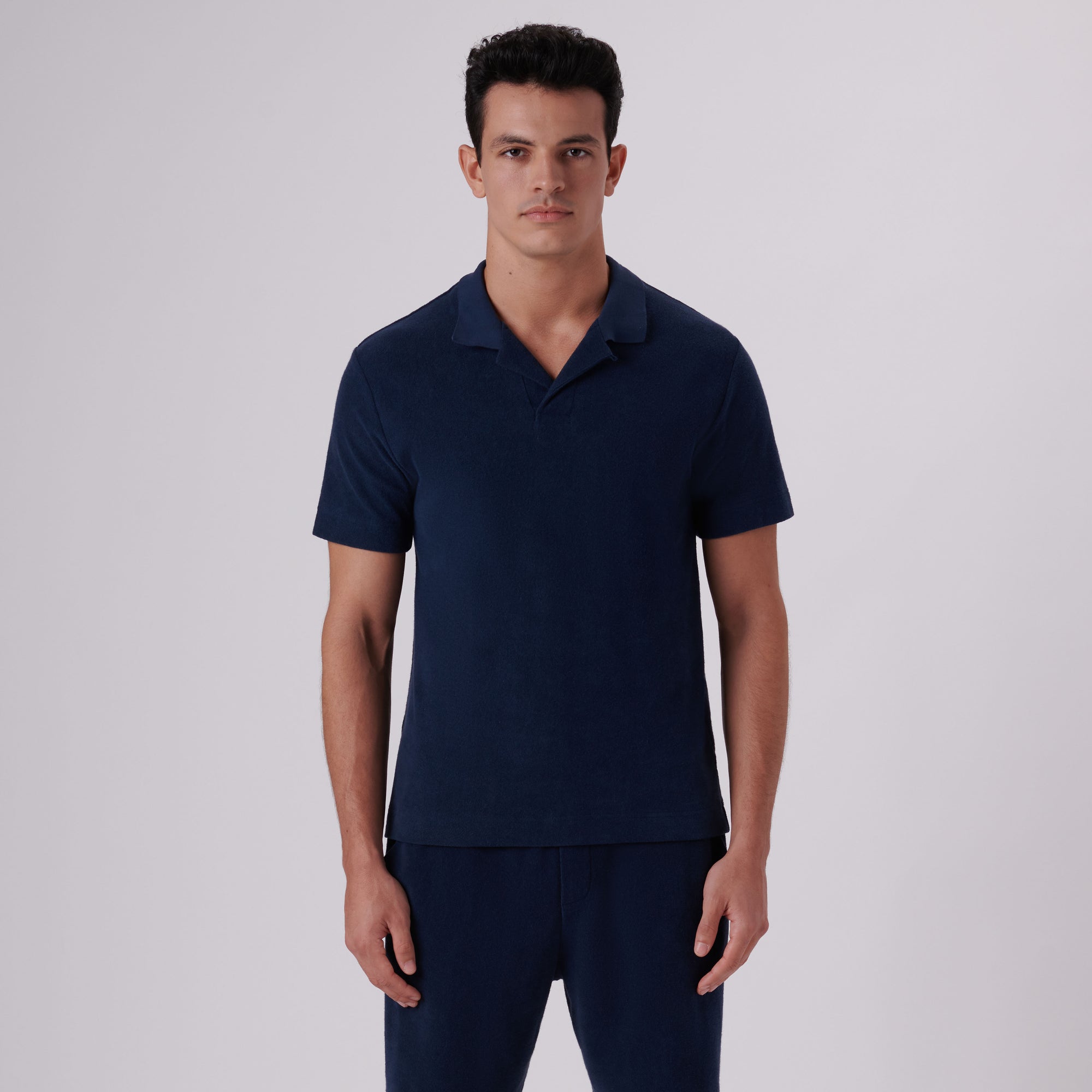 Towelling short-sleeved Johnny polo in 100% cotton French terry with rib knit collar and single button placket closure option.