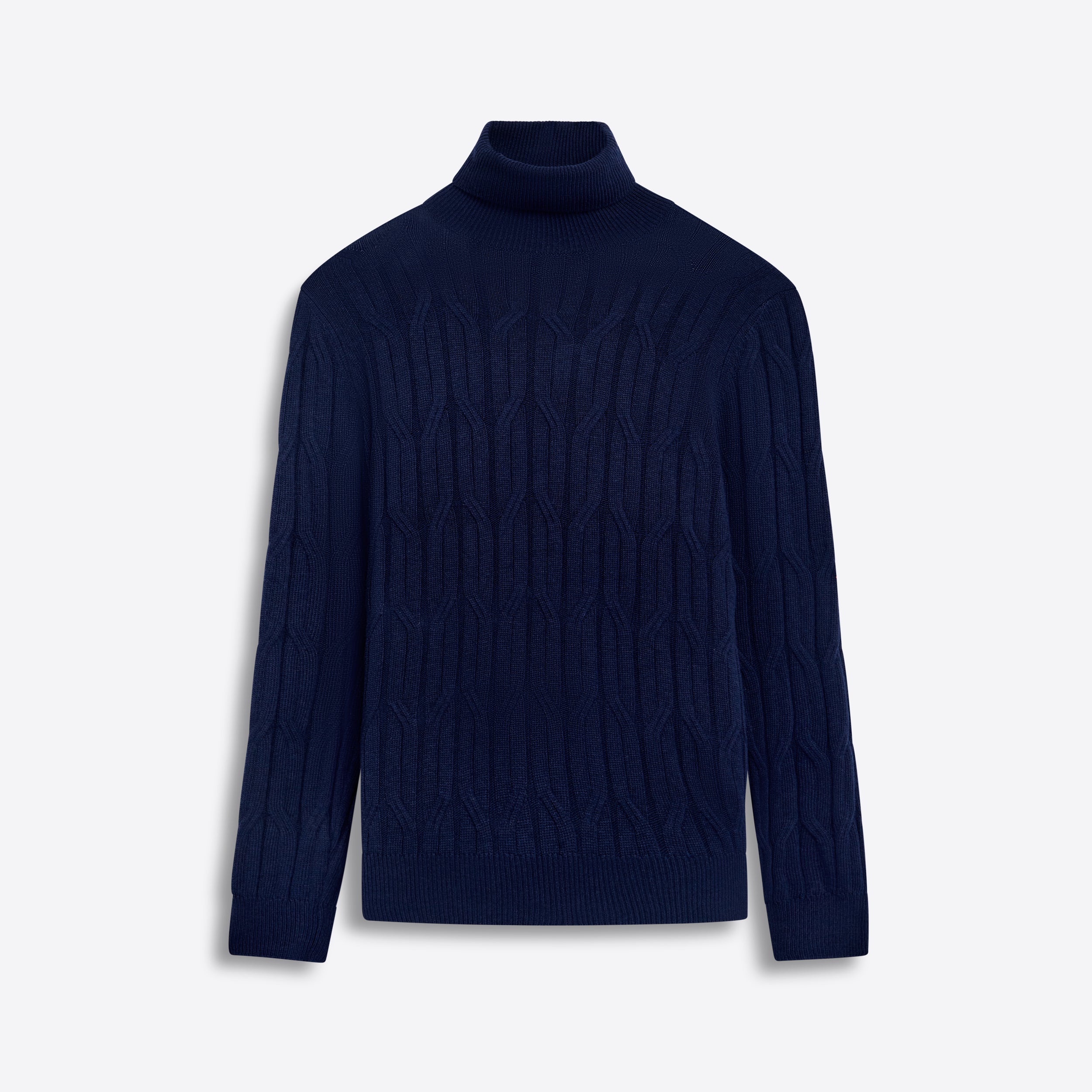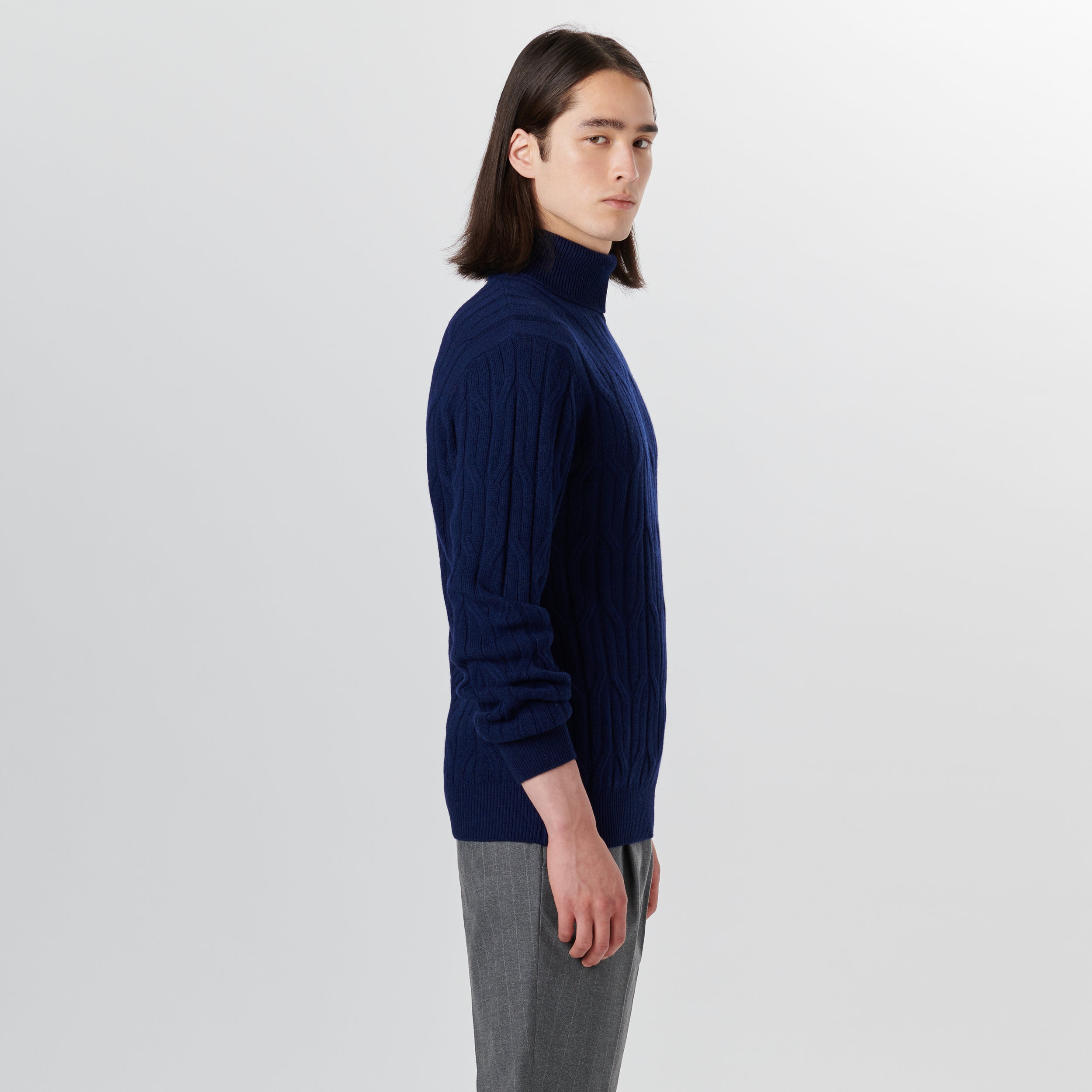 Turtle neck cable jacquard sweater in wool blend with ribbed collar, cuffs and waistband. Made in Italy.