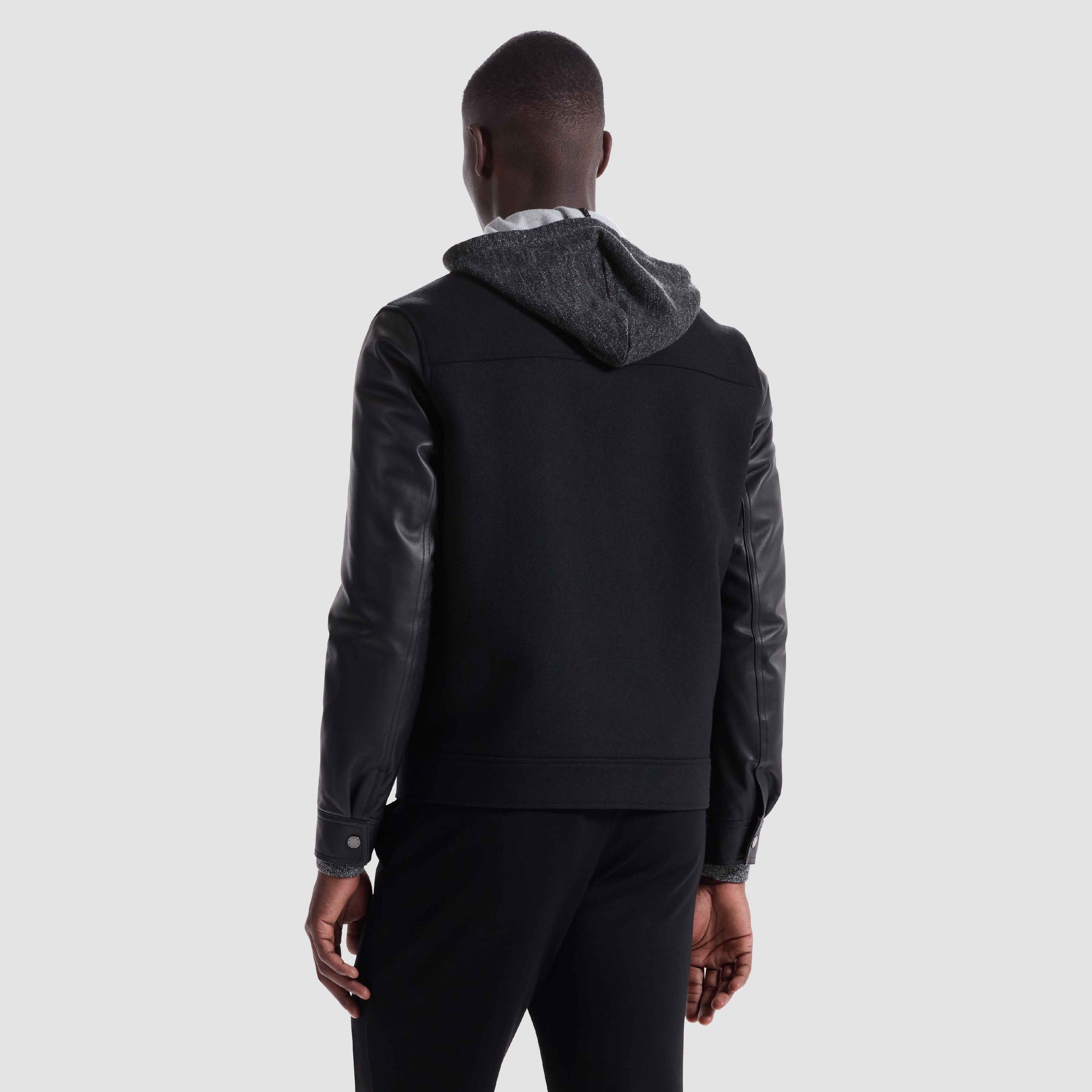 This wool-blend blouson combines a refined tweed pattern with sleek leather sleeves for a modern, elevated look. Designed with a point collar and snap closures at the front and cuffs, it also features two angled welt pockets and three interior pockets. A perfect blend of style and functionality and the perfect jacket for transitional weather.