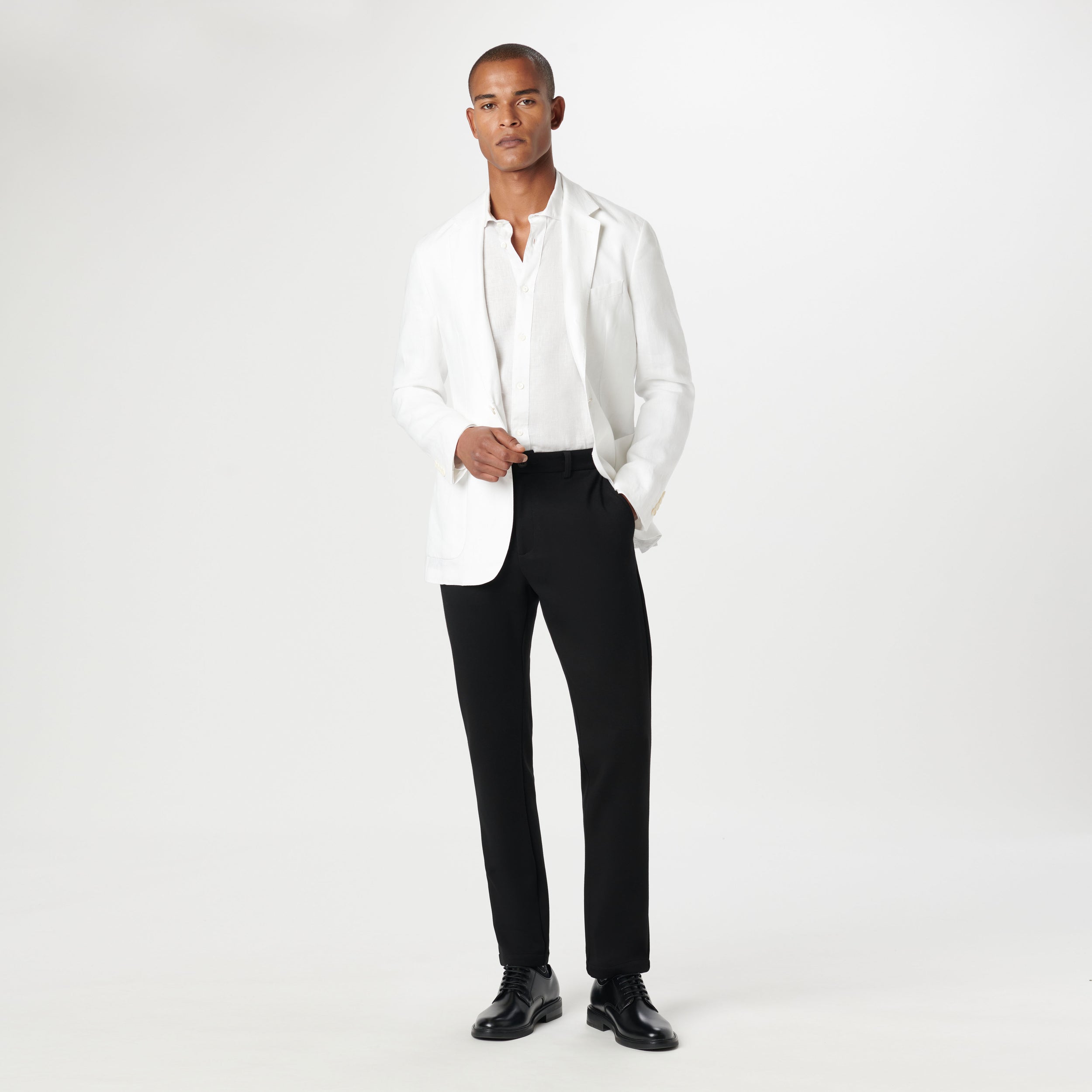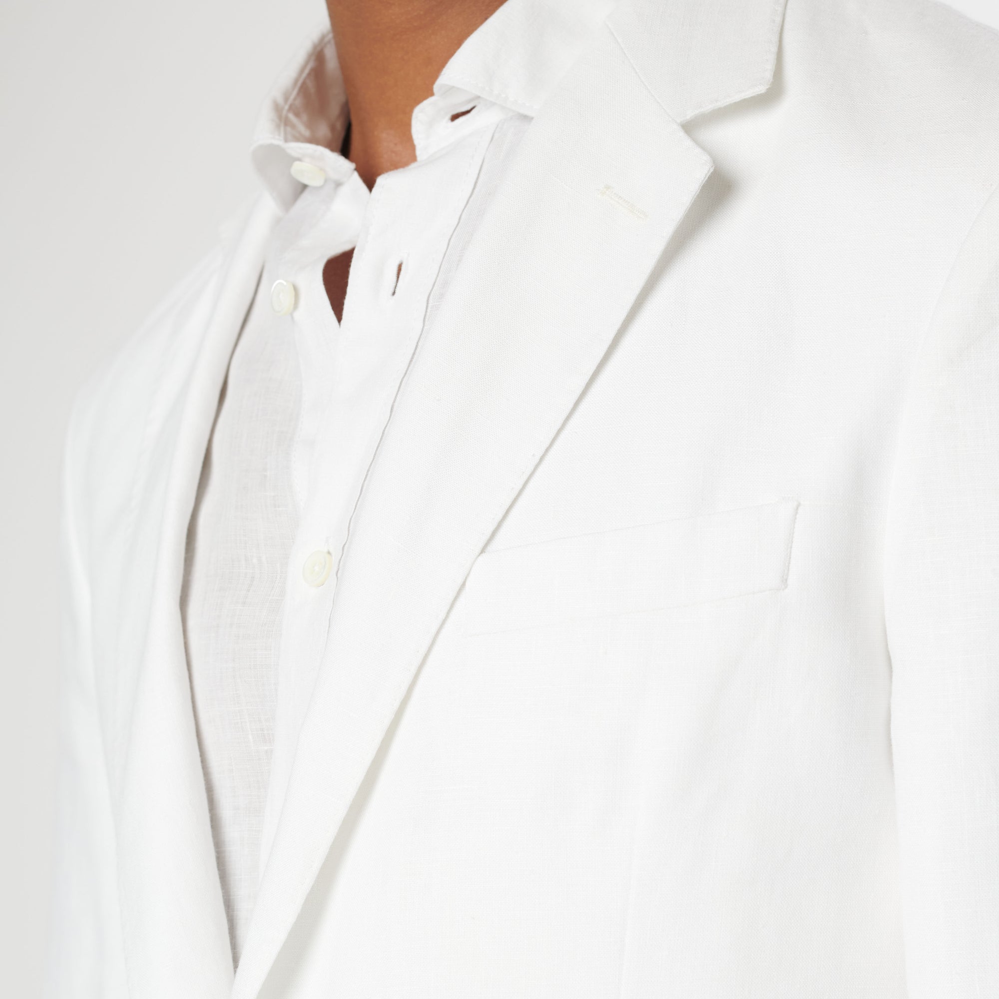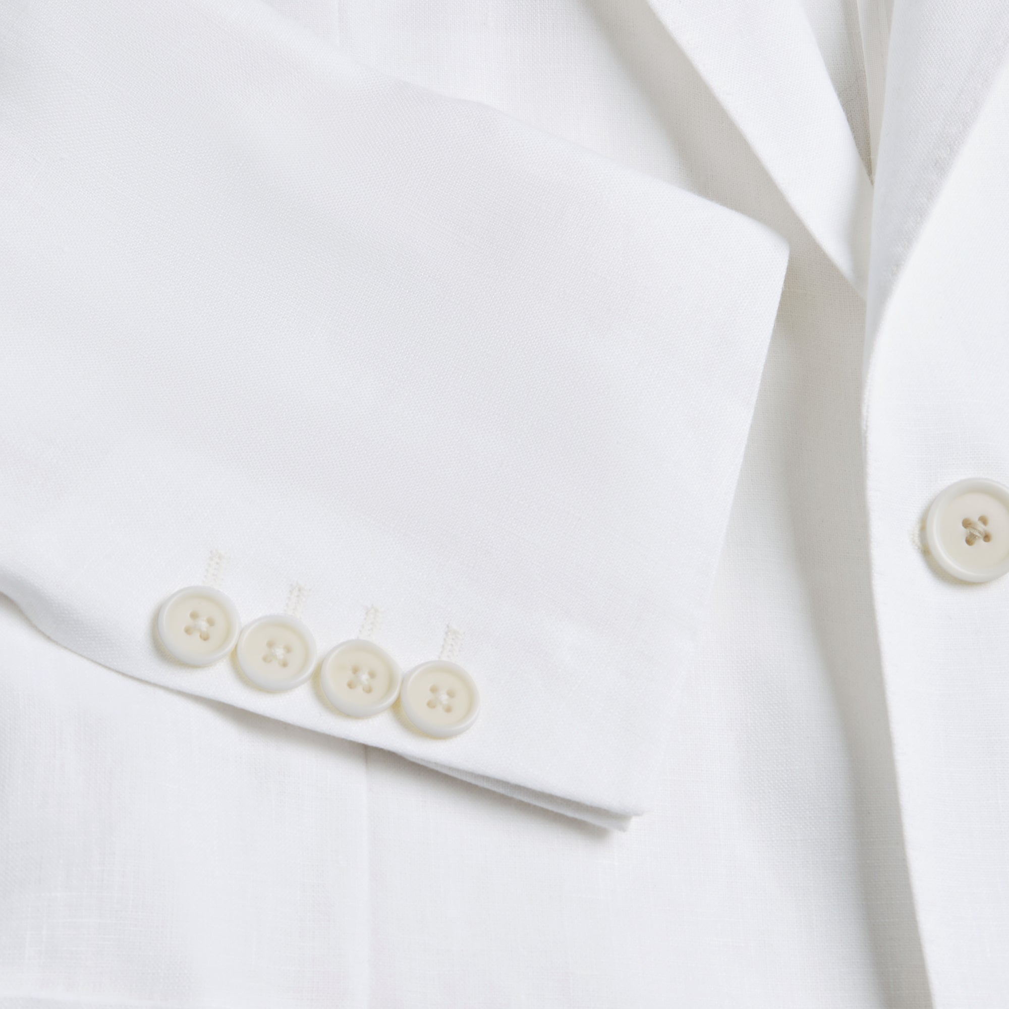 Crafted from 100% linen, this two button blazer exudes a lightweight and breathable elegance, perfect for the warmer seasons. The half lining enhances breathability while maintaining a polished look. The notched lapel adds a timeless touch, complemented by two patch pockets, one chest pocket, and one inner buttoned pocket for convenient storage without compromising the sleek silhouette.