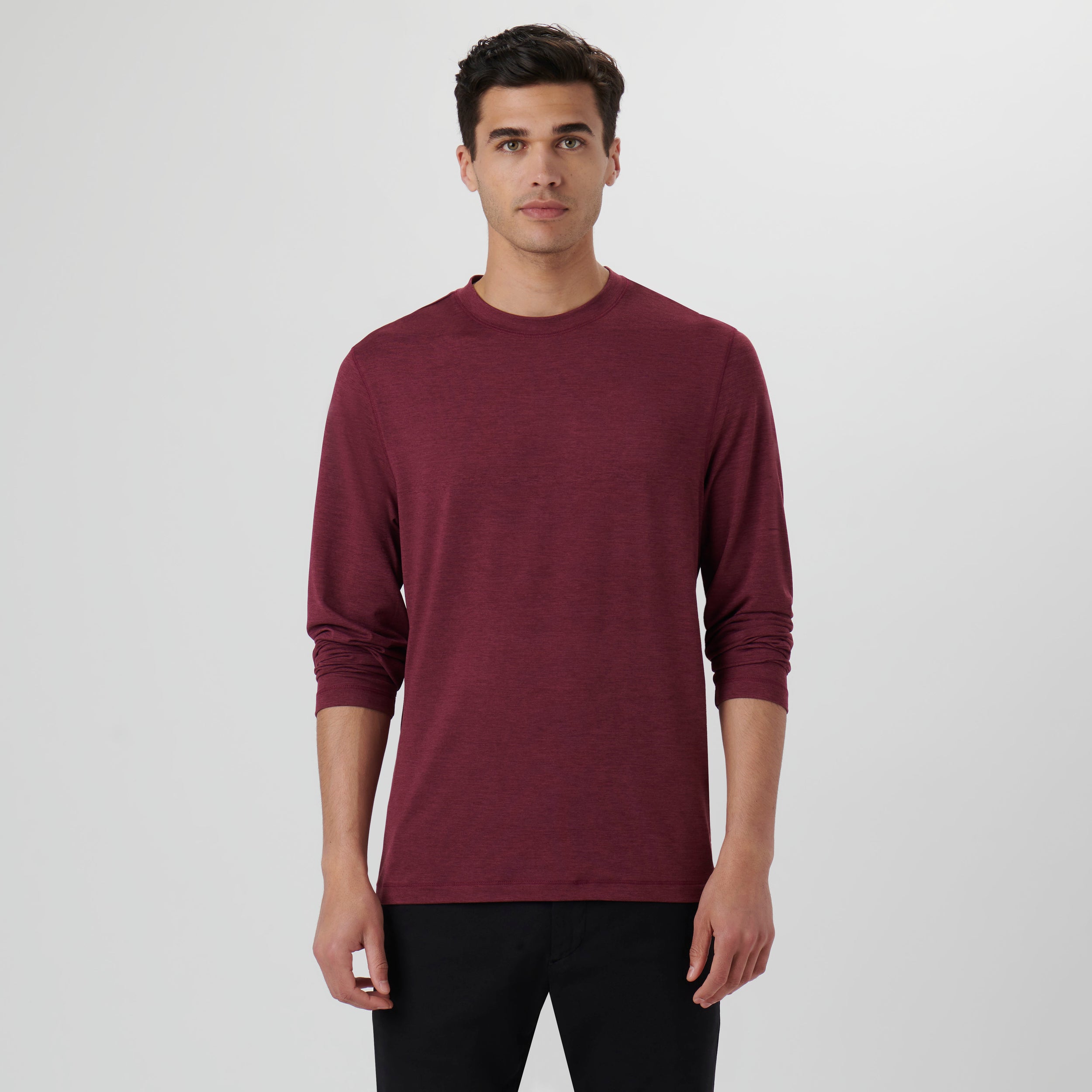 Long-sleeved crew pullover in solid 4-way stretch performance fabric and back pocket with invisible zipper. This garment protects against UV rays (UPF50+).