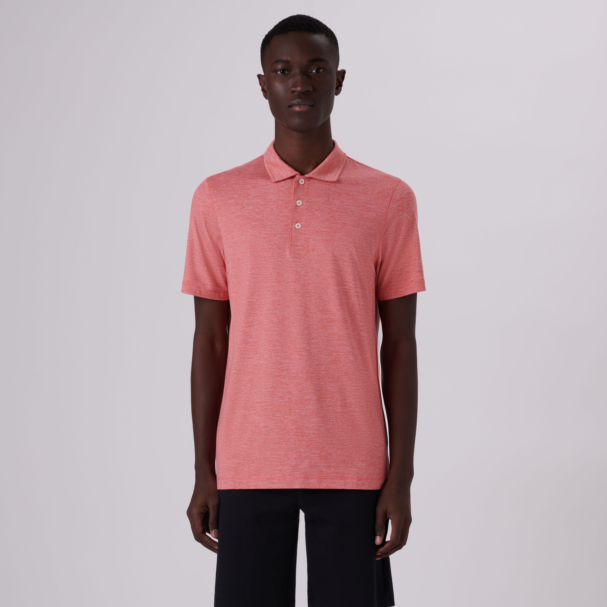 Enjoy incredible comfort and added sun protection with this polo shirt crafted from premium performance fabric with 4-way stretch and UPF50+ protection. It features a heather pattern, a classic three-button placket, mother-of-pearl buttons, and a self fabric collar. Always stay cool and protected on the golf course, boat, or out to brunch with the family.