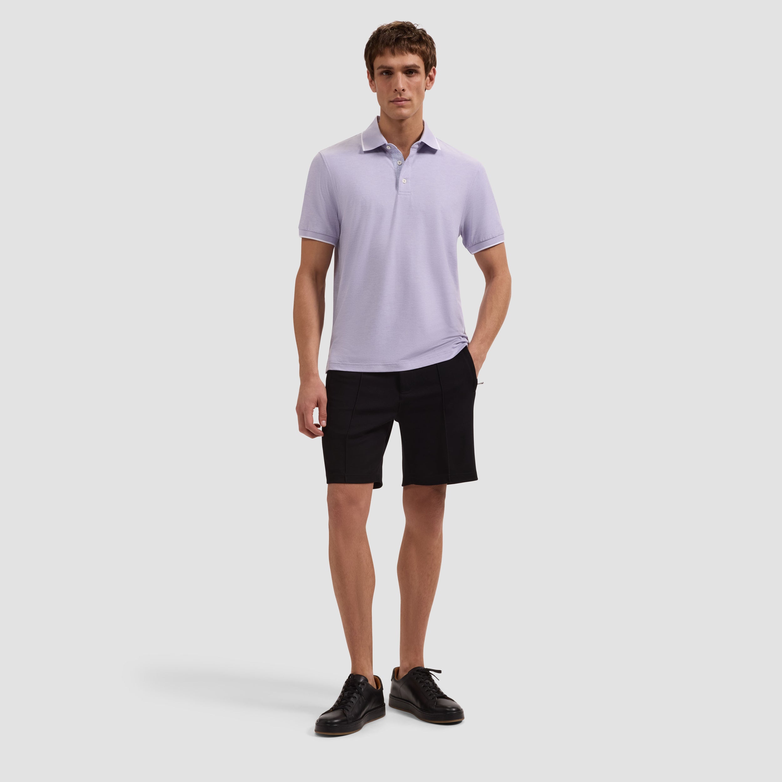 This performance polo blends modern function with refined style in a soft melange texture. Crafted from a lightweight, moisture-wicking fabric with SPF 50+ sun protection, it features a ribbed collar and cuffs with contrast tipping, plus a printed contrast detail inside the collar band, bottom placket, and inner yoke. Finished with mother-of-pearl buttons, it's ideal for resort wear, casual occasions, or a day on the golf course.