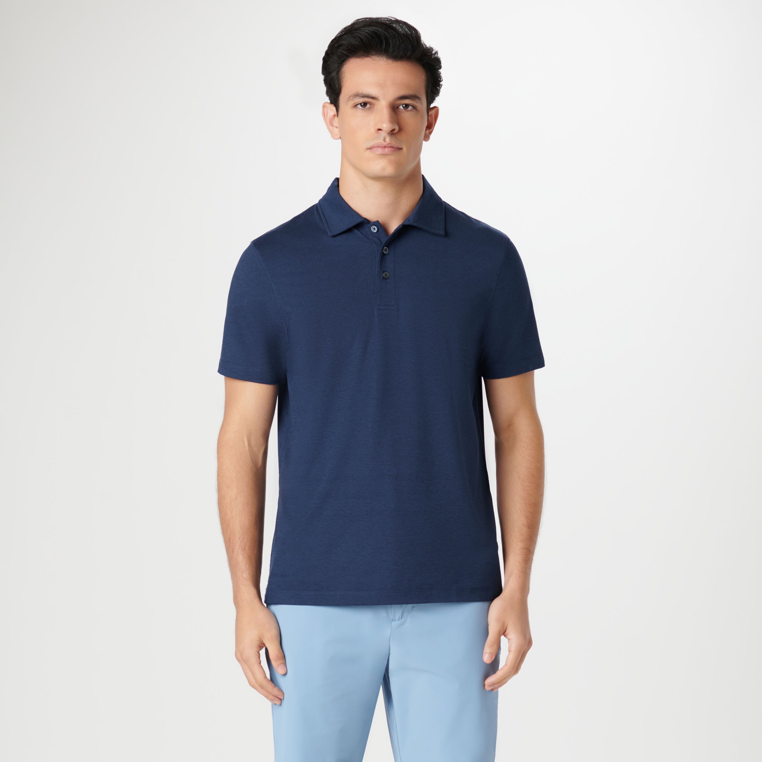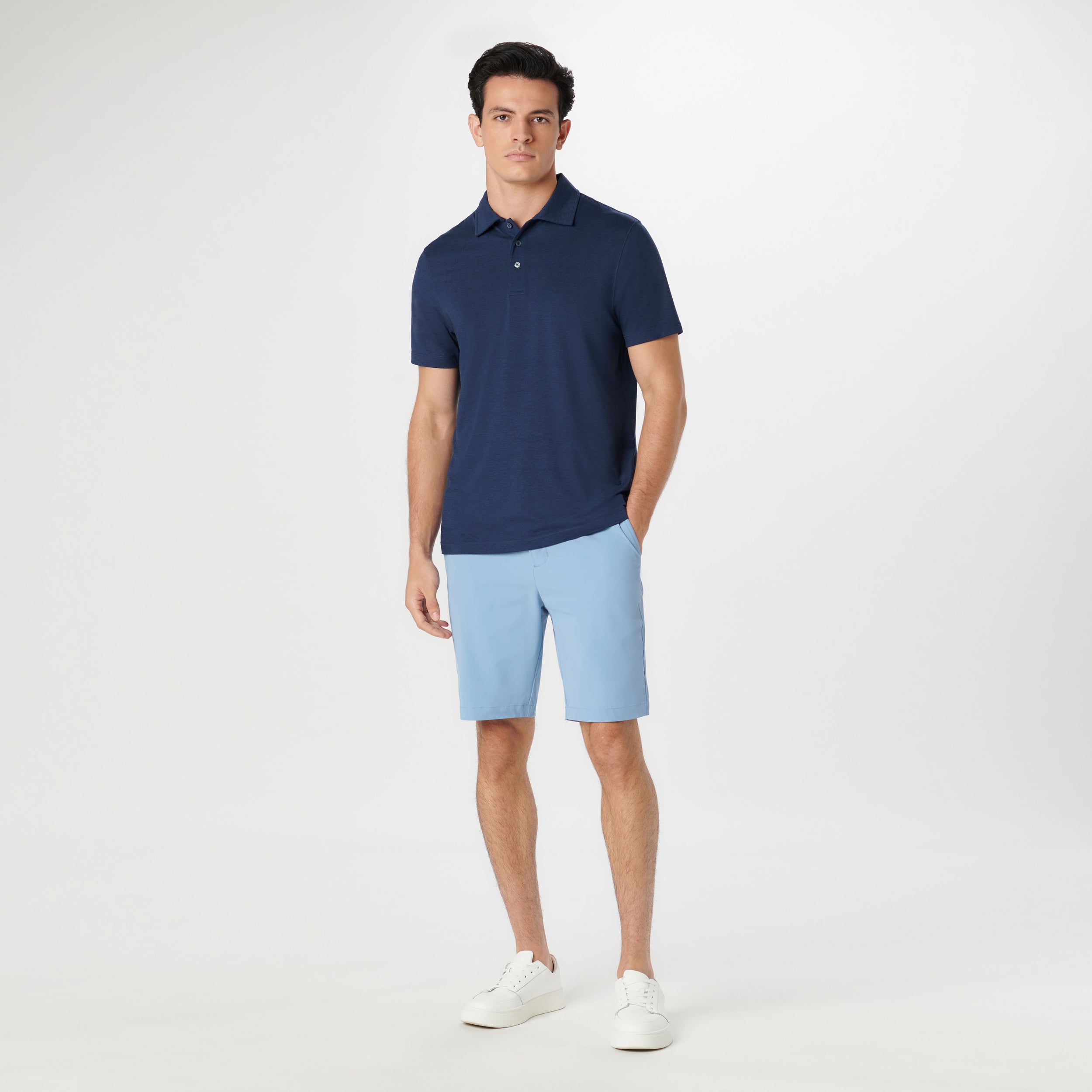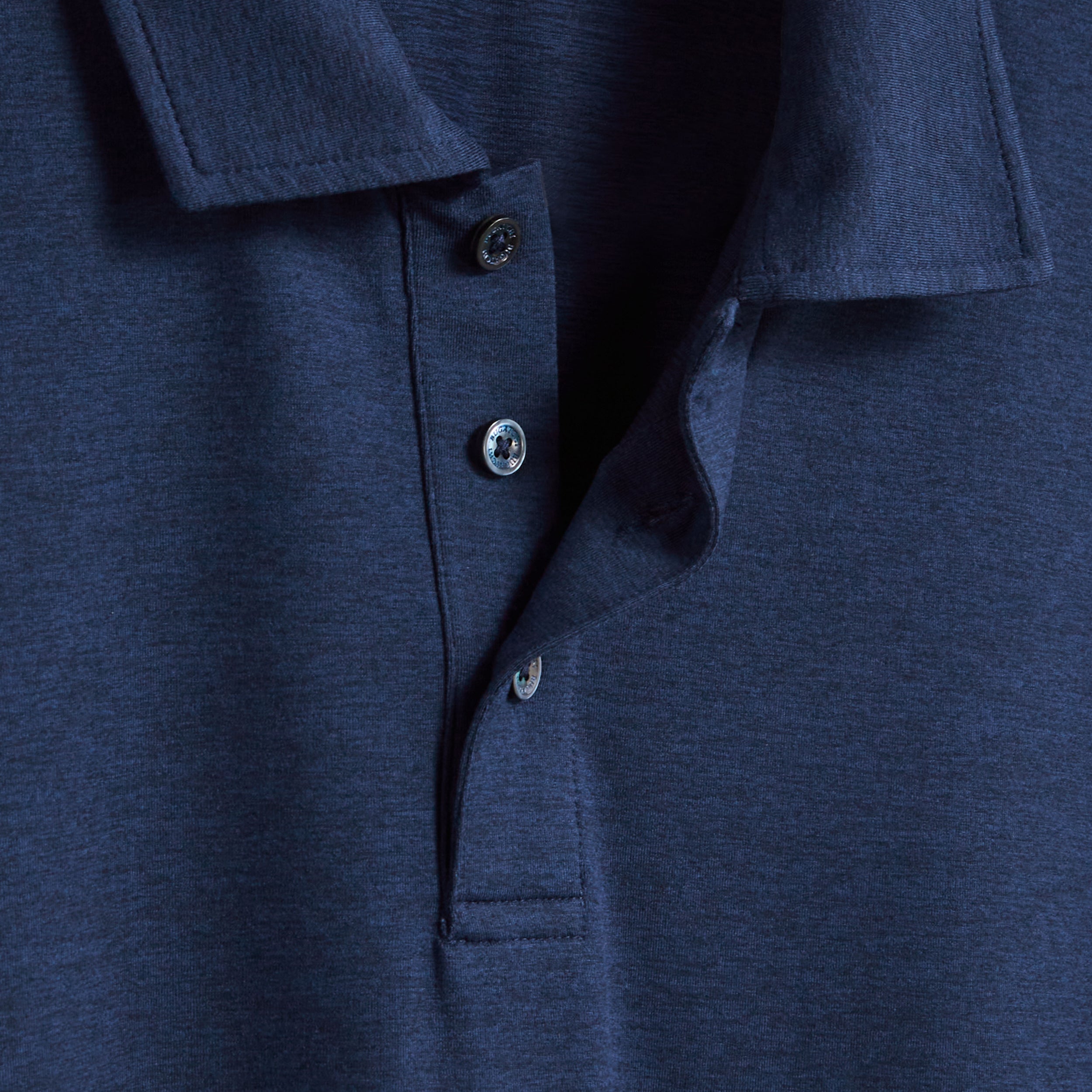Enjoy incredible comfort and added sun protection with this polo shirt crafted from premium performance fabric with 4-way stretch and UPF50+ protection. It features a heather pattern, a classic three-button placket, mother-of-pearl buttons, and a self fabric collar. Always stay cool and protected on the golf course, boat, or out to brunch with the family.