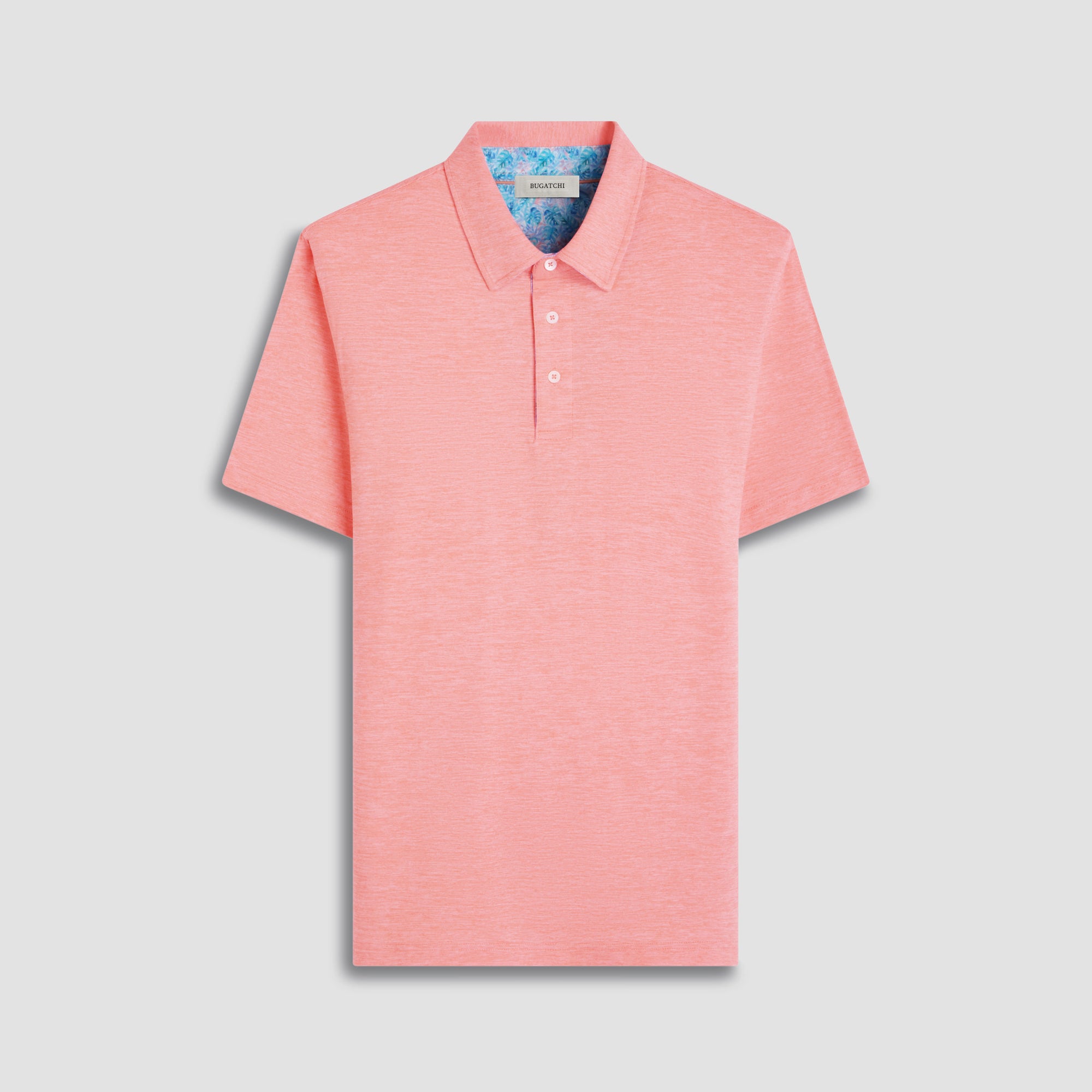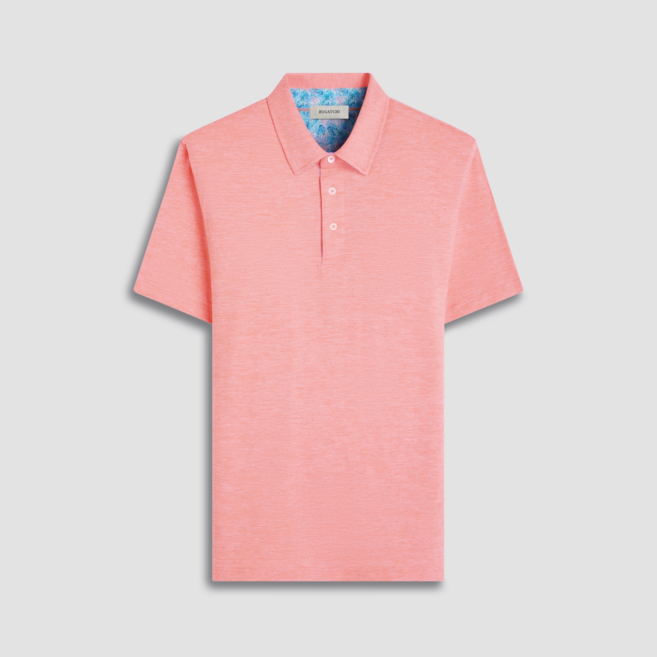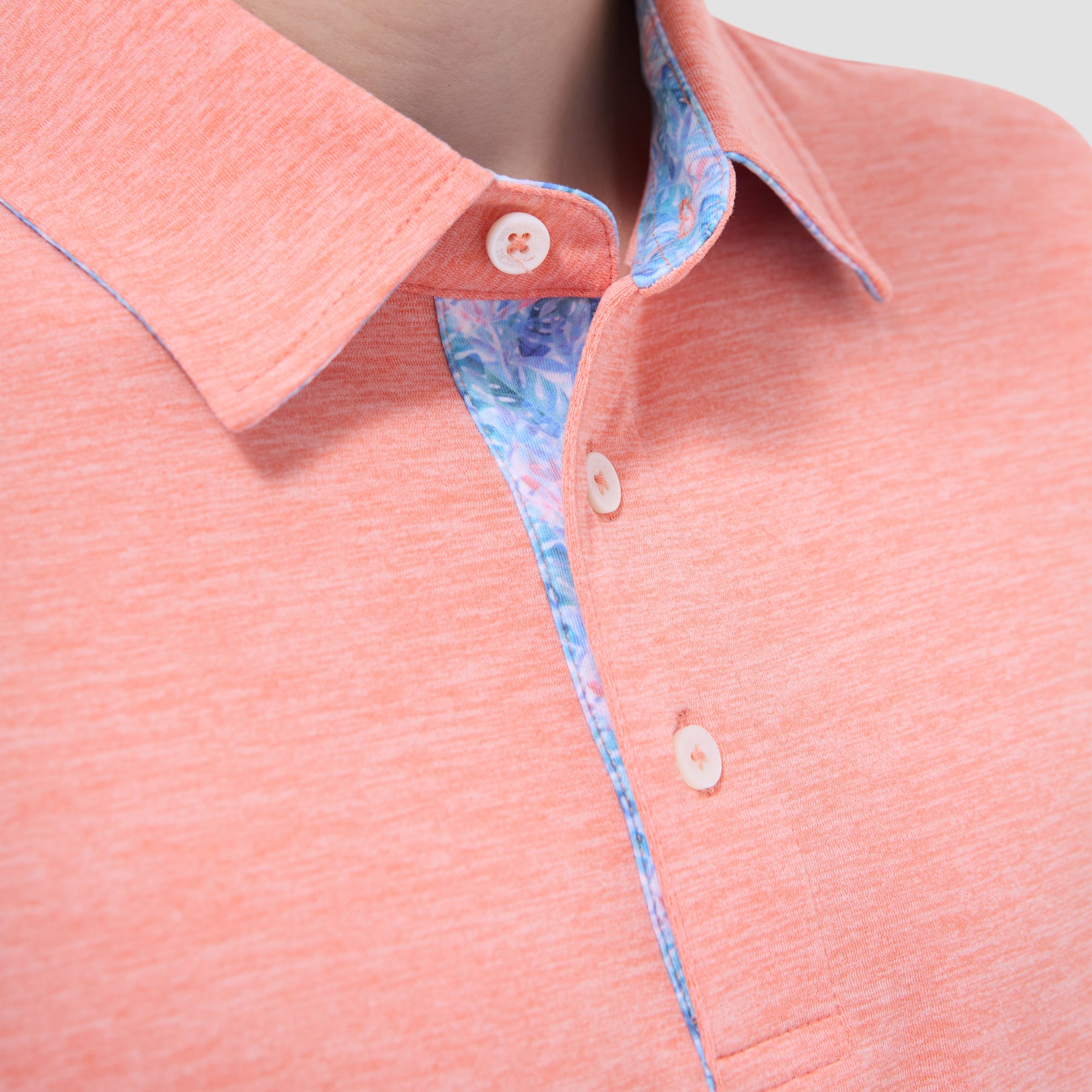 Enjoy incredible comfort and added sun protection with this short-sleeve polo shirt crafted from premium performance fabric with 4-way stretch and UPF50+ protection. It features a classic three-button placket, mother-of-pearl buttons, a self fabric collar, and is accented with a printed pattern. Always stay cool and protected on the golf course, boat, or at an outdoor gathering.