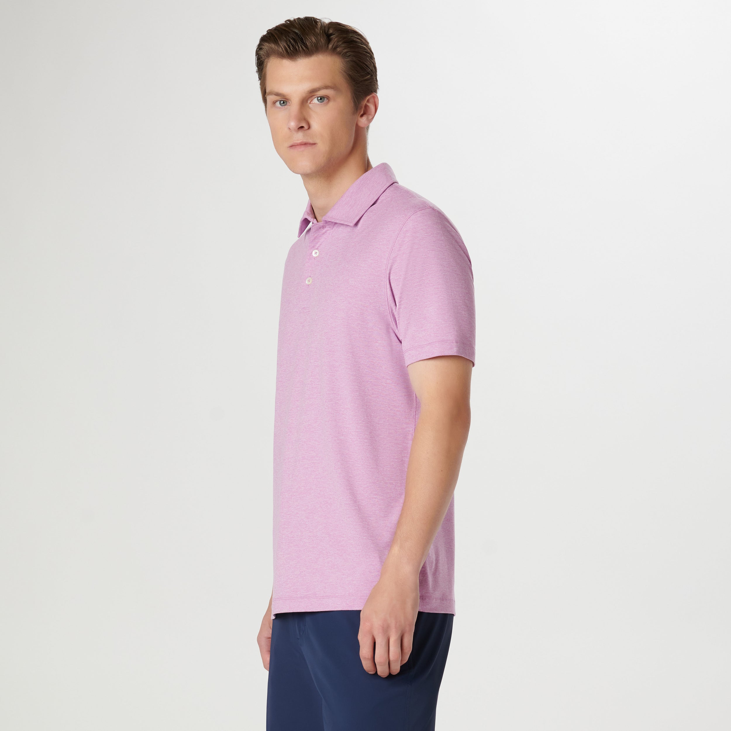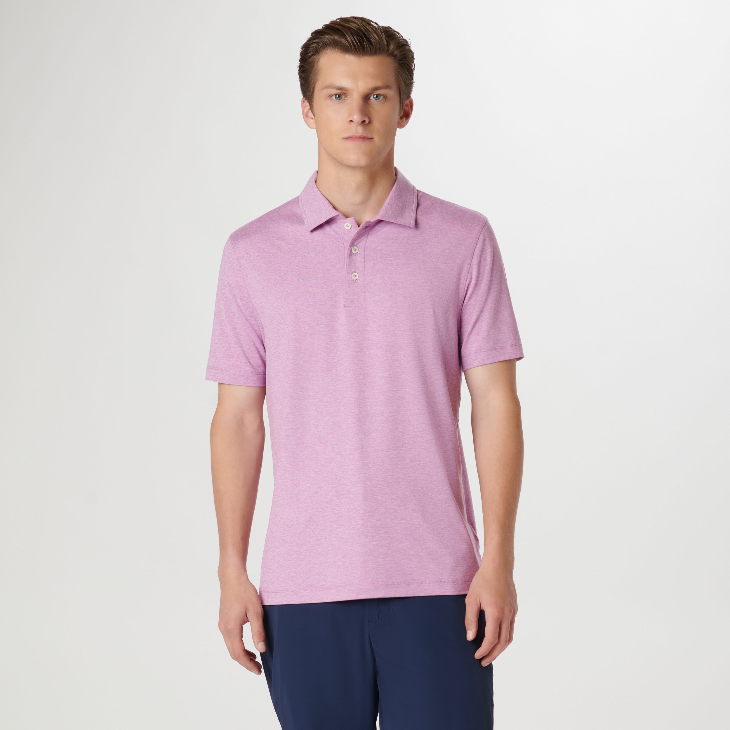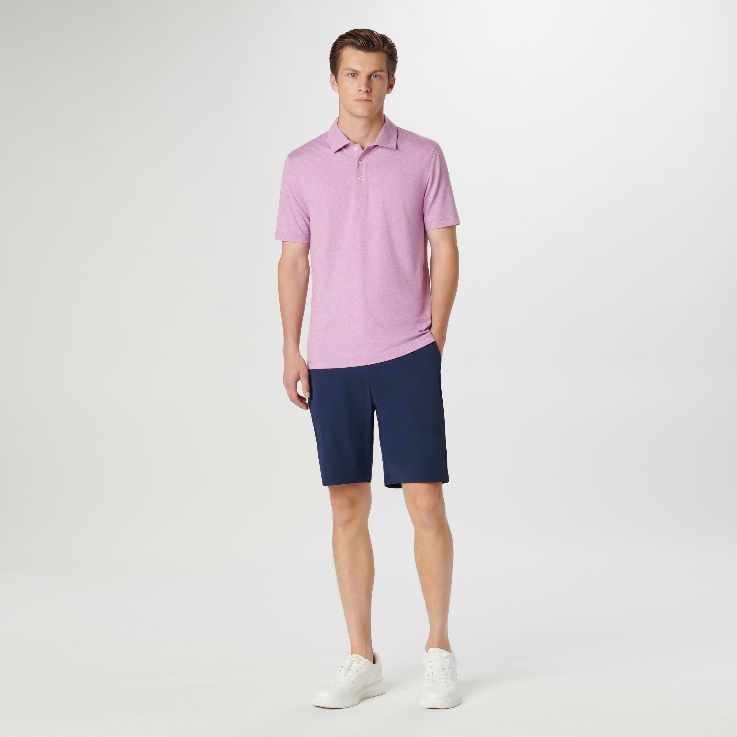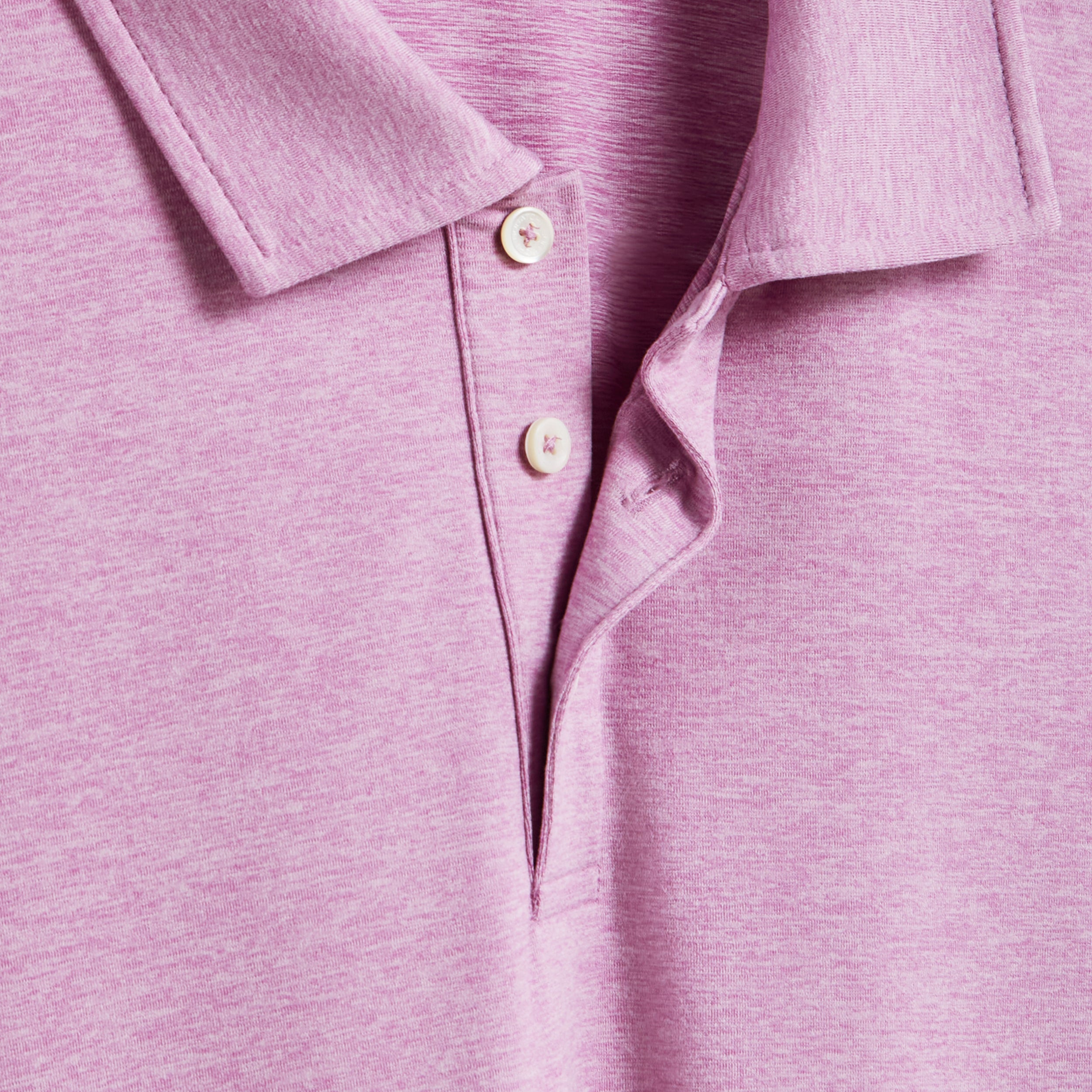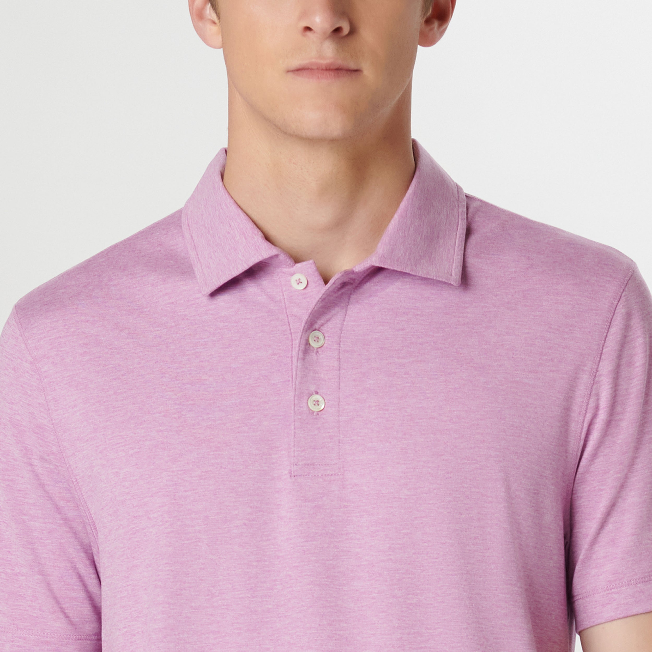 Enjoy incredible comfort and added sun protection with this polo shirt crafted from premium performance fabric with 4-way stretch and UPF50+ protection. It features a heather pattern, a classic three-button placket, mother-of-pearl buttons, and a self fabric collar. Always stay cool and protected on the golf course, boat, or out to brunch with the family.