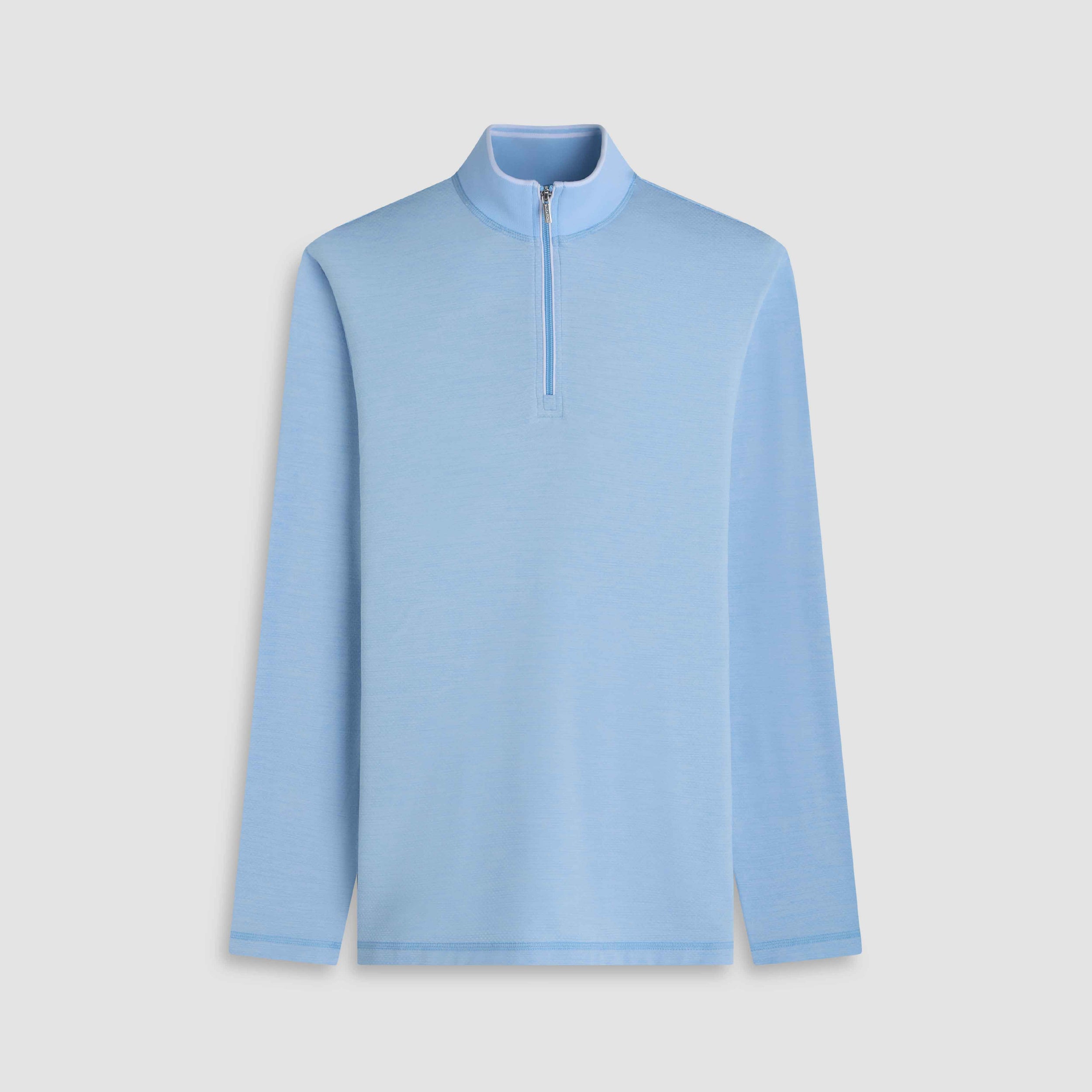 Crafted from premium performance fabric with a melange micro-dot texture, this long sleeve quarter-zip provides SPF 50+ sun protection for resort days and laid-back weekends. Featuring a refined bird's eye mock neck collar with contrast tipping and a coordinating tipped zipper placket, it delivers both style and function. Finished with a straight hem and straight cuffs for a clean, polished look.