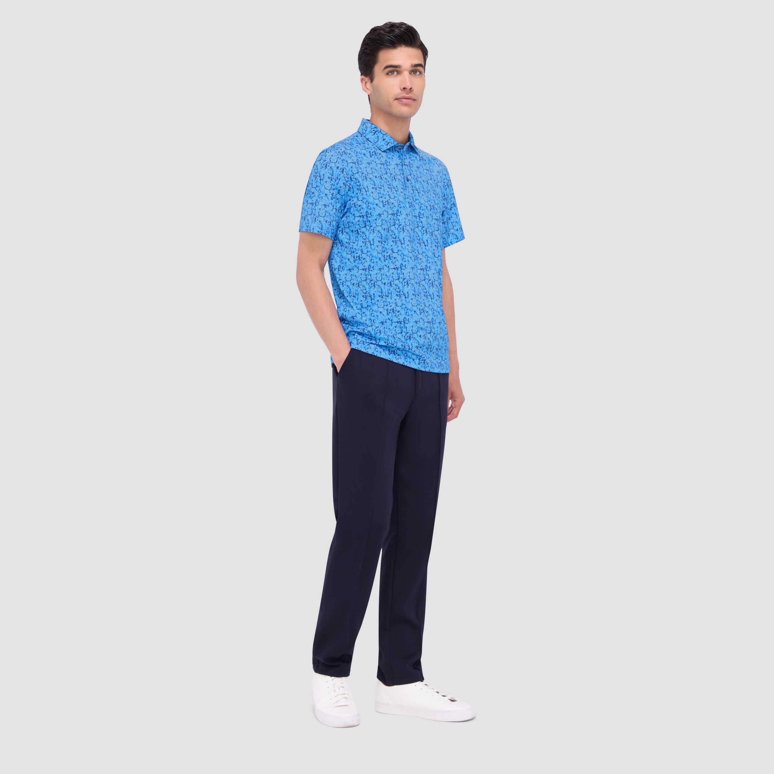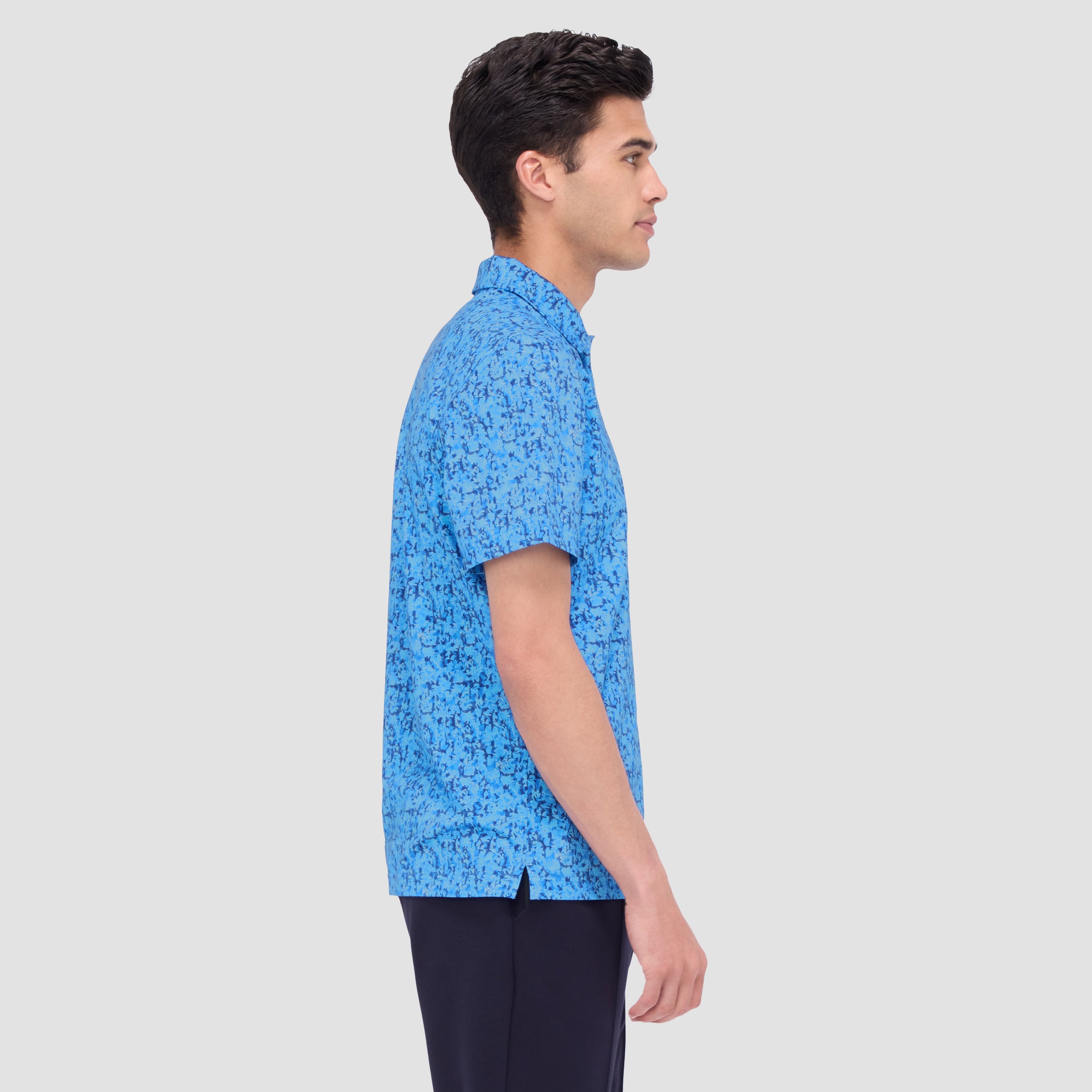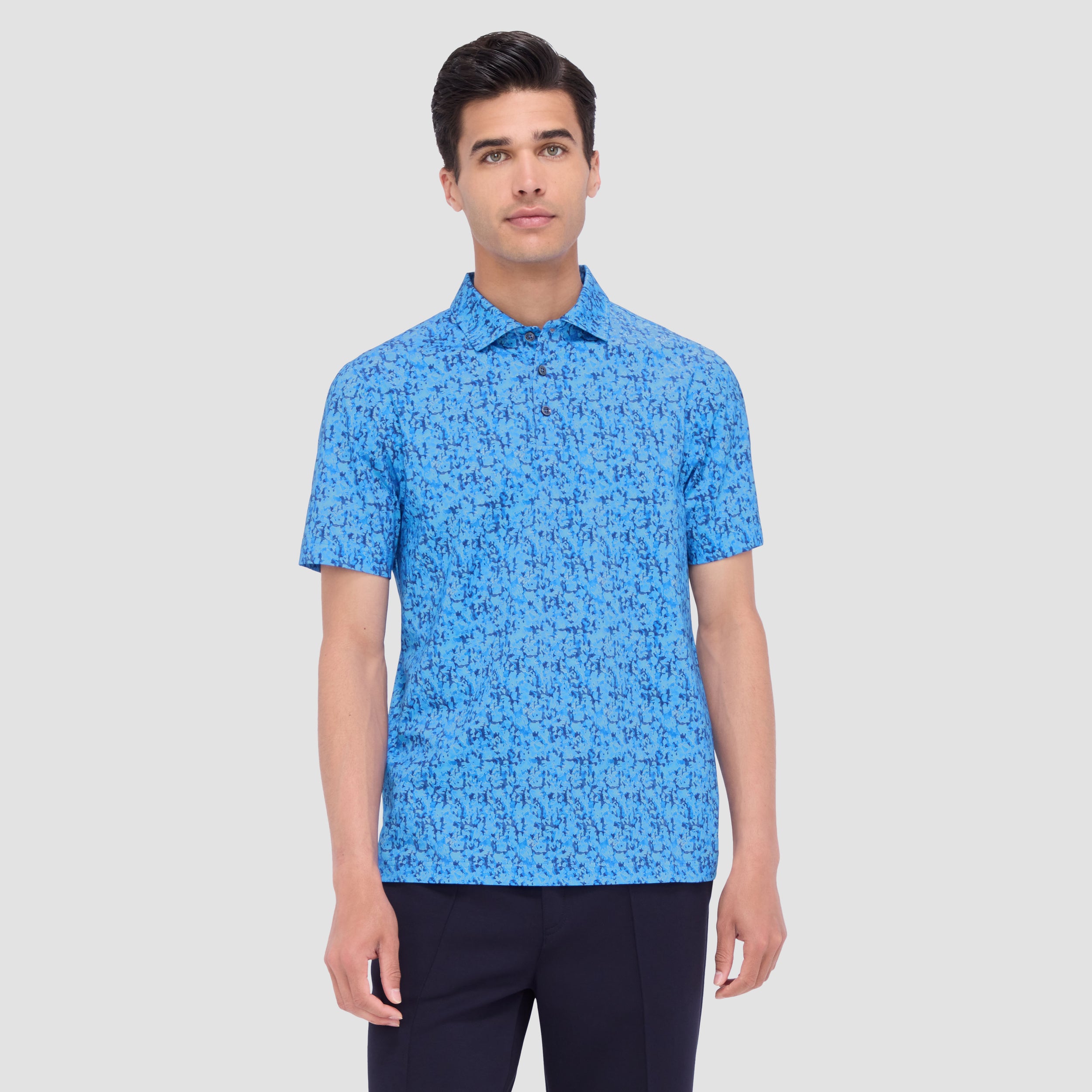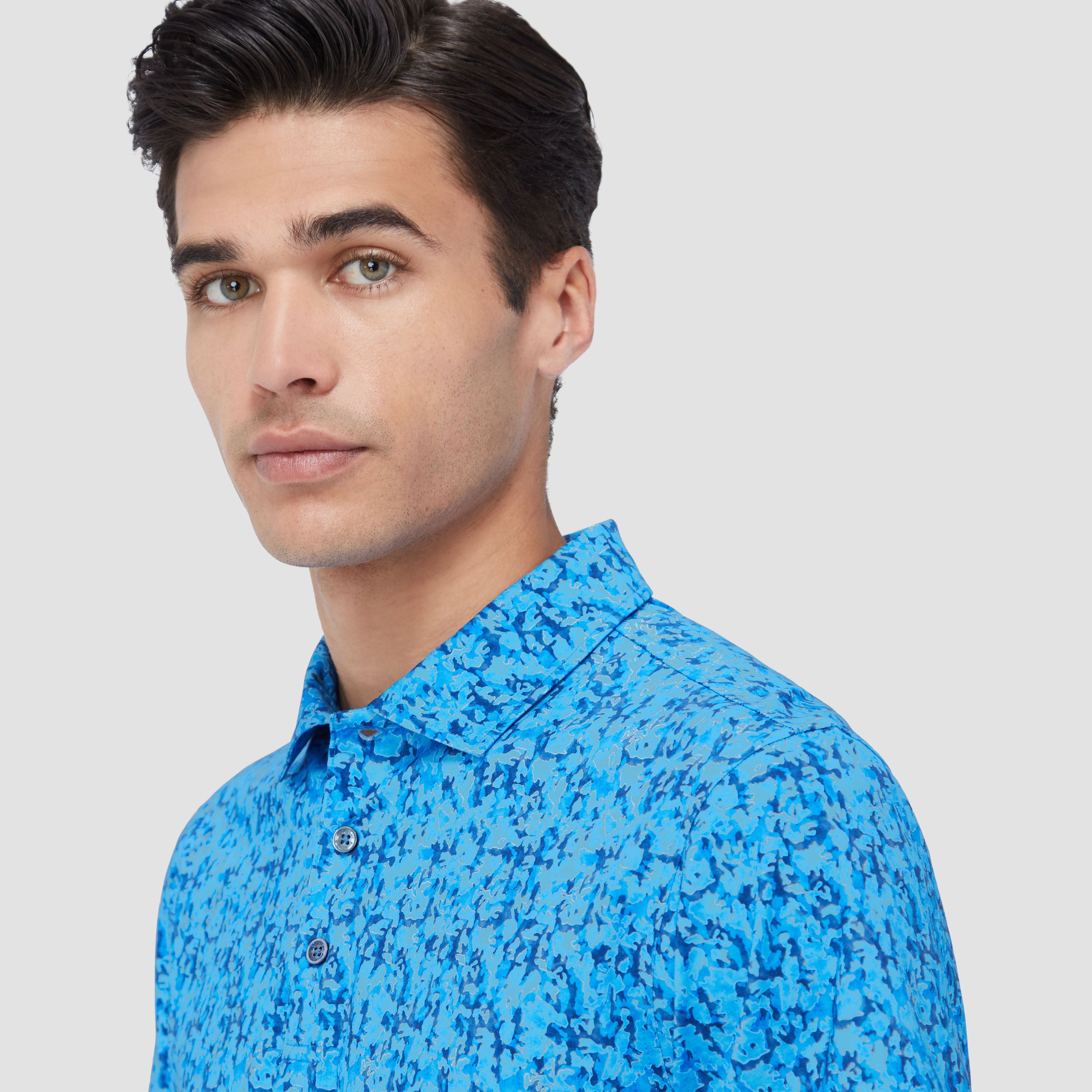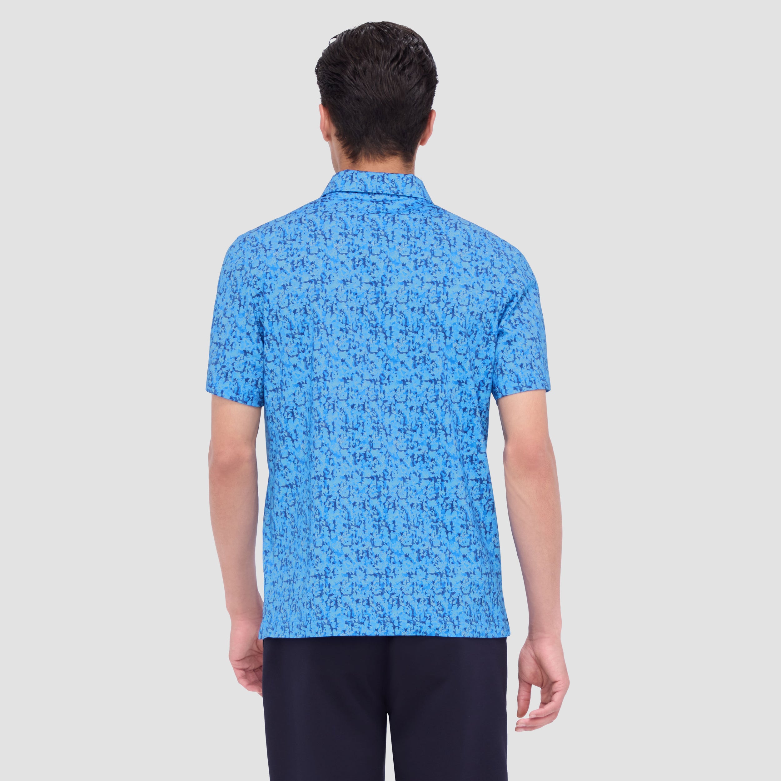 The Victor abstract print OoohCotton short-sleeved polo shirt featuring a three-button placket, mother-of-pearl buttons, and a self-fabric collar is the ideal choice for looking and feeling your best, whether you are enjoying a casual day or performing on the golf course. OoohCotton is a performance, double-mercerized, wrinkle-resistant, breathable, and easy-care cotton blend with 8-way stretch, quick-dry, and thermal comfort properties.
