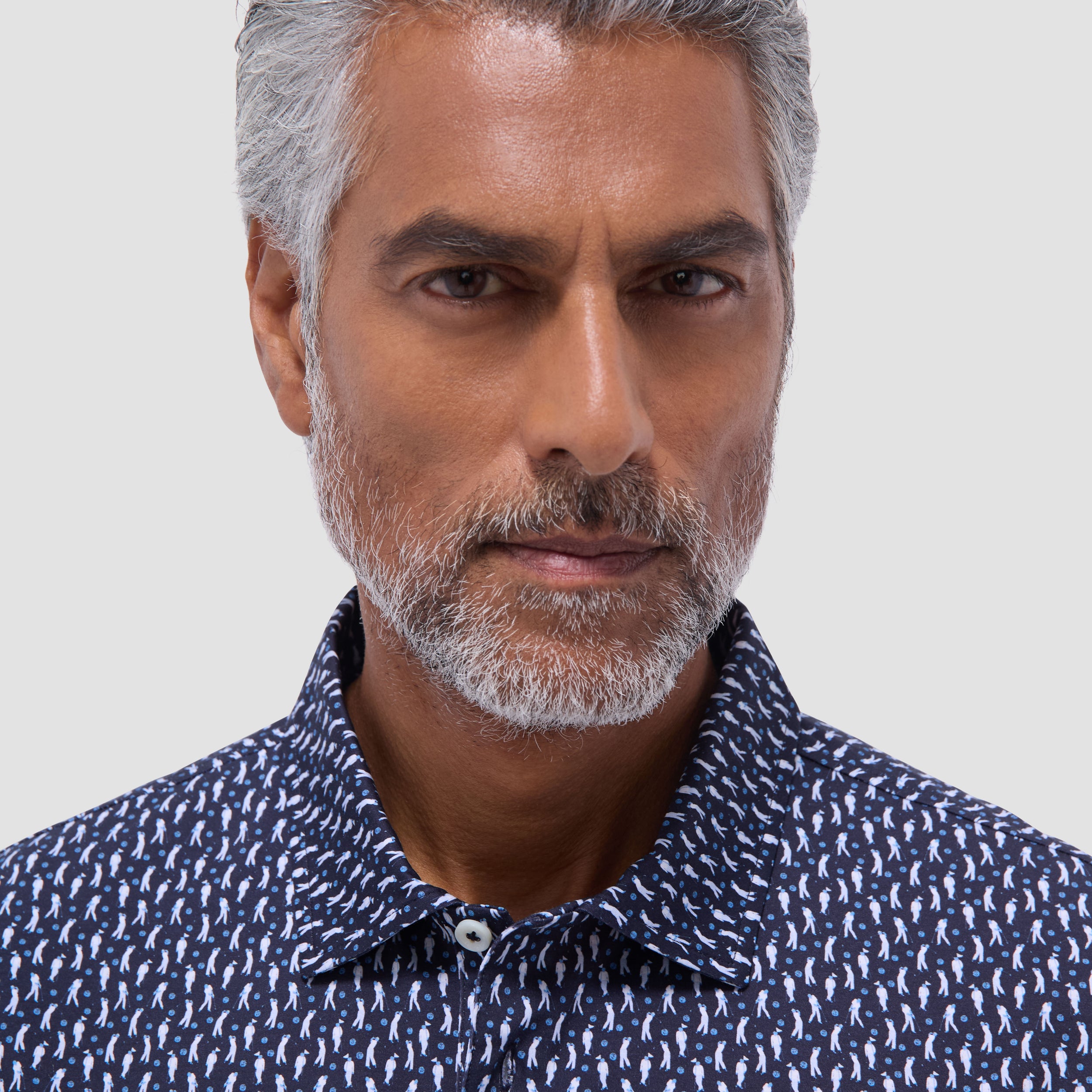 The Victor OoohCotton short-sleeve polo shirt in golfer print featuring a three-button placket, mother-of-pearl buttons, and a self-fabric collar is perfect for casual days or the golf course. OoohCotton is a performance, double-mercerized, wrinkle-resistant, breathable, and easy-care cotton blend with 8-way stretch, quick-dry, and thermal comfort properties.