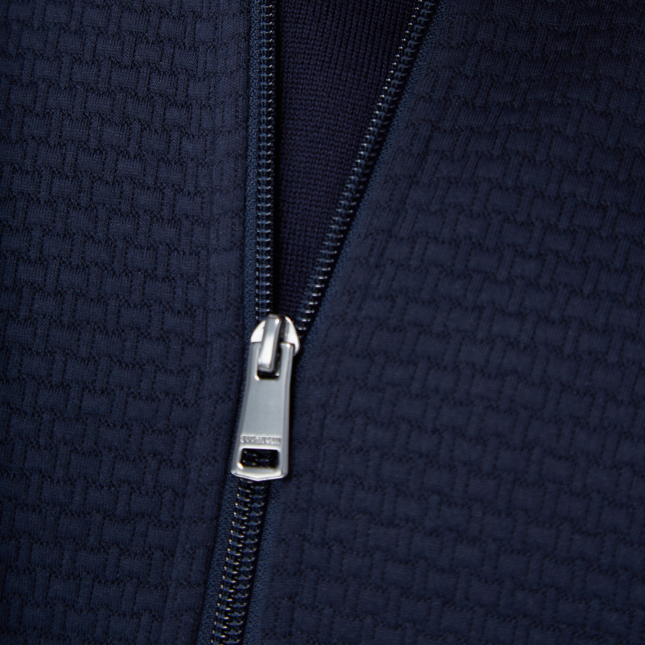 Indulge in both style and functionality with this zip-up jacket. Made from comfort stretch performance fabric, it boasts a chic design with a two-way zipper, waffle pattern front, zippered pockets and rib baseball collar, cuffs and waist. Experience ease of movement and comfort all day long. Count on its durability for everyday wear, while its quick-dry and moisture-wicking properties keep you feeling fresh and dry through any activity.