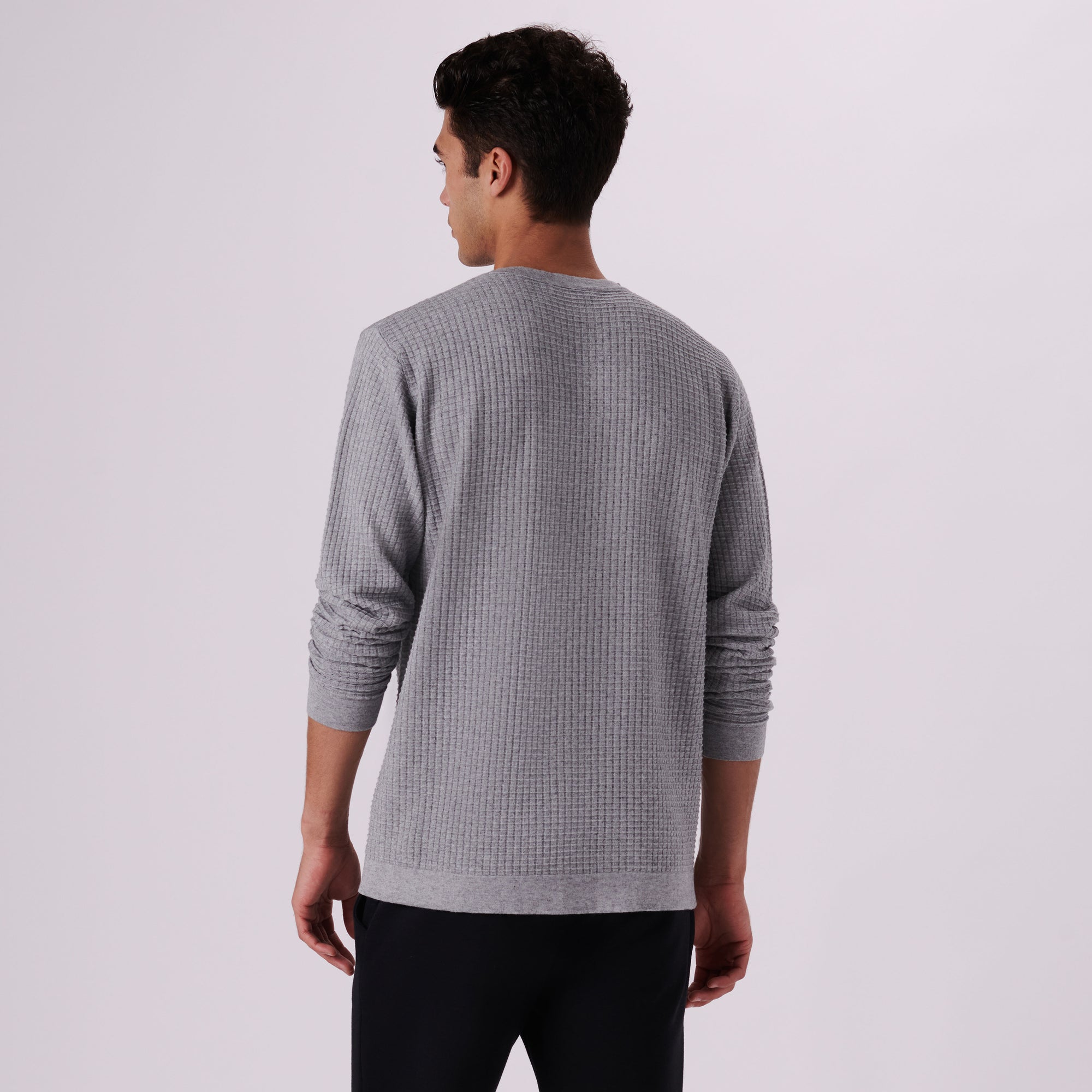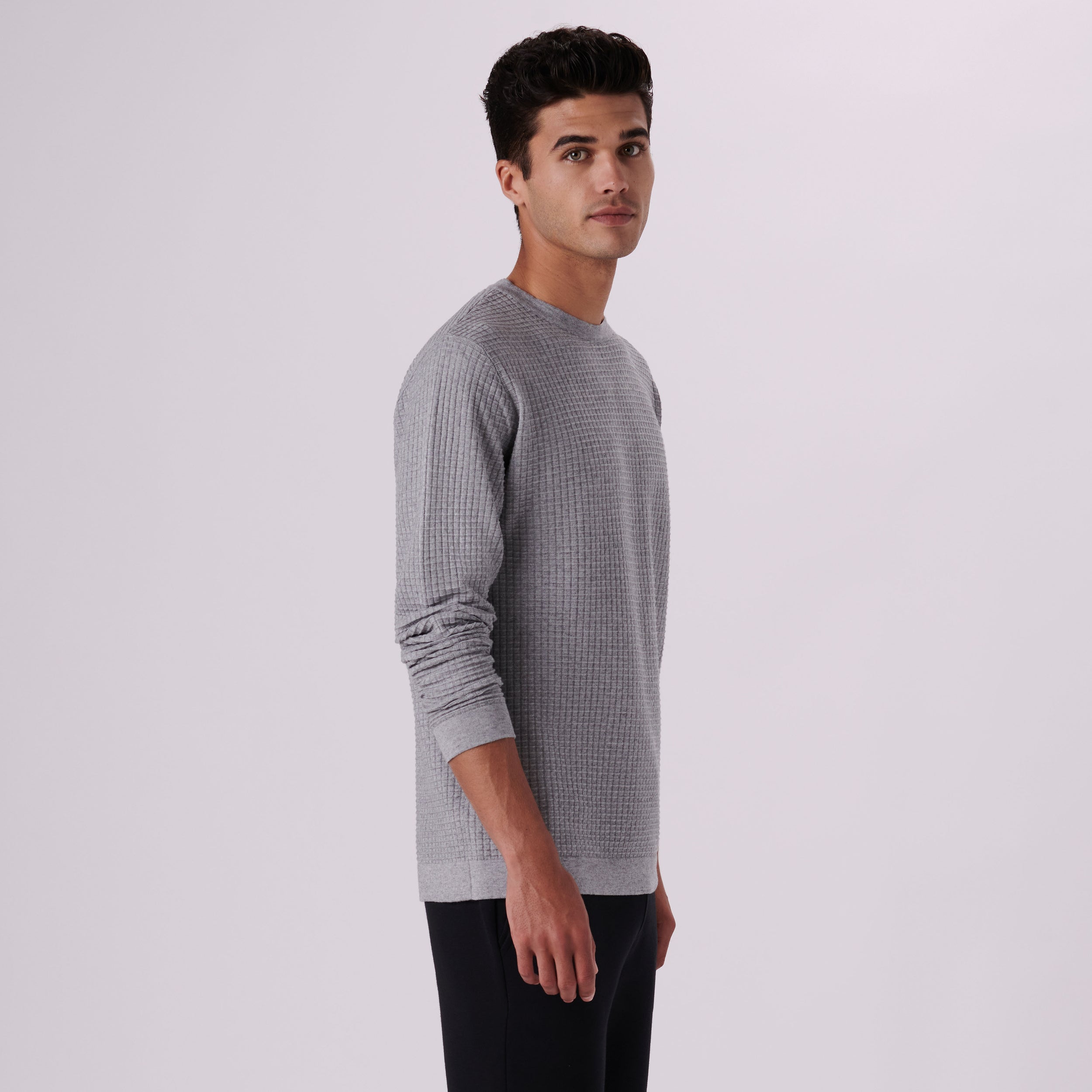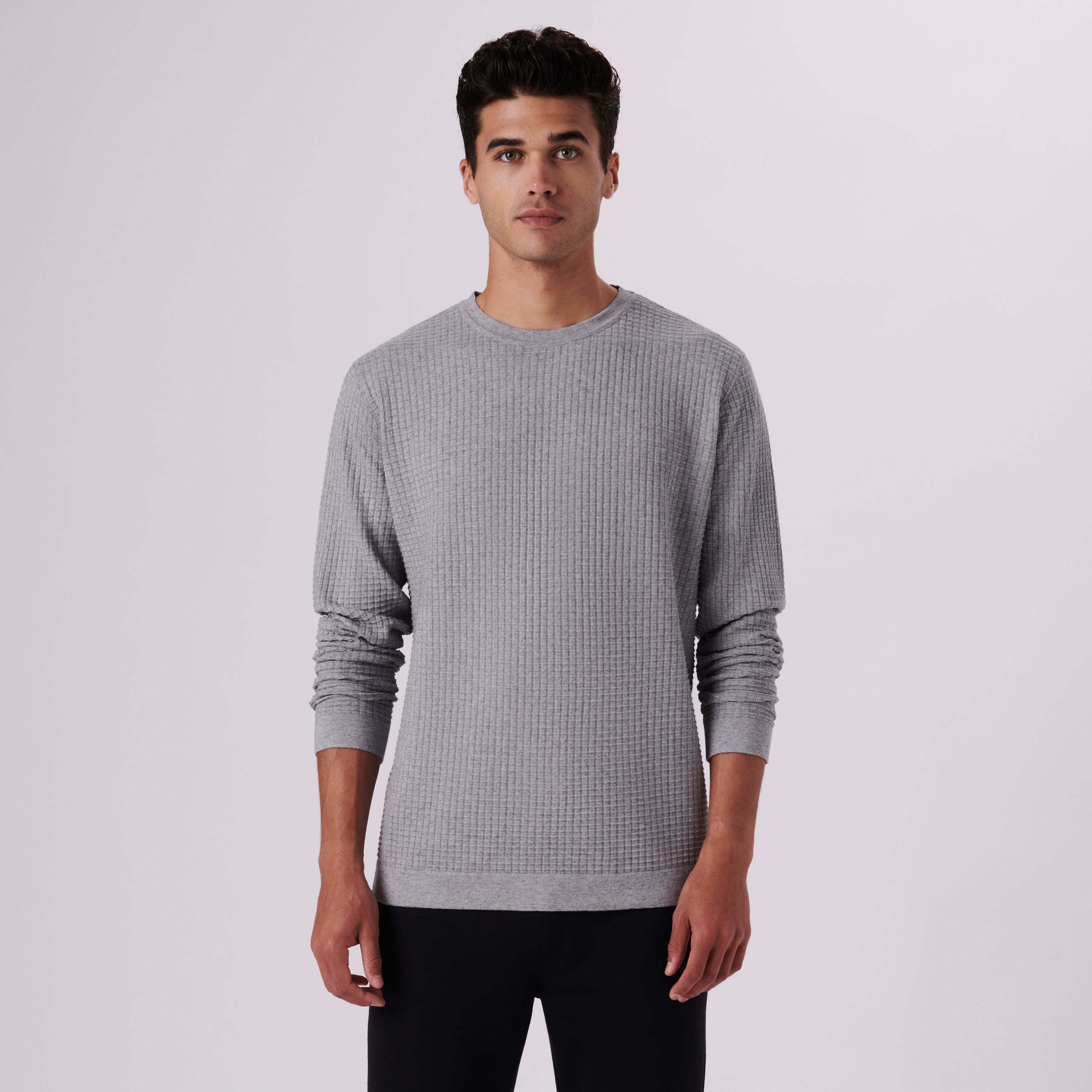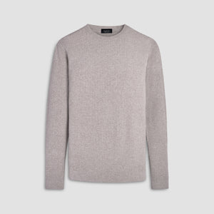 Waffle knit long-sleeved crew neck sweater in cotton and cashmere blend with rib knit collar, cuffs and waistband. Made in Italy.