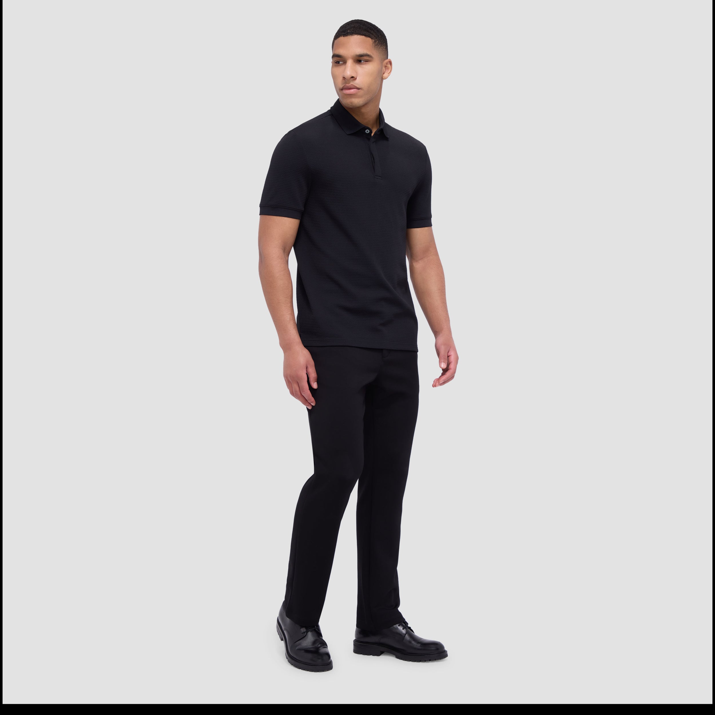 Upgrade your wardrobe with this short-sleeved polo shirt, designed in performance comfort stretch fabric for ultimate ease and flexibility. Featuring a stylish waffle pattern, covered three-button placket, ribbed collar and sleeve cuffs, this polo ensures a polished look while offering superior comfort. Perfect for both active and casual wear.