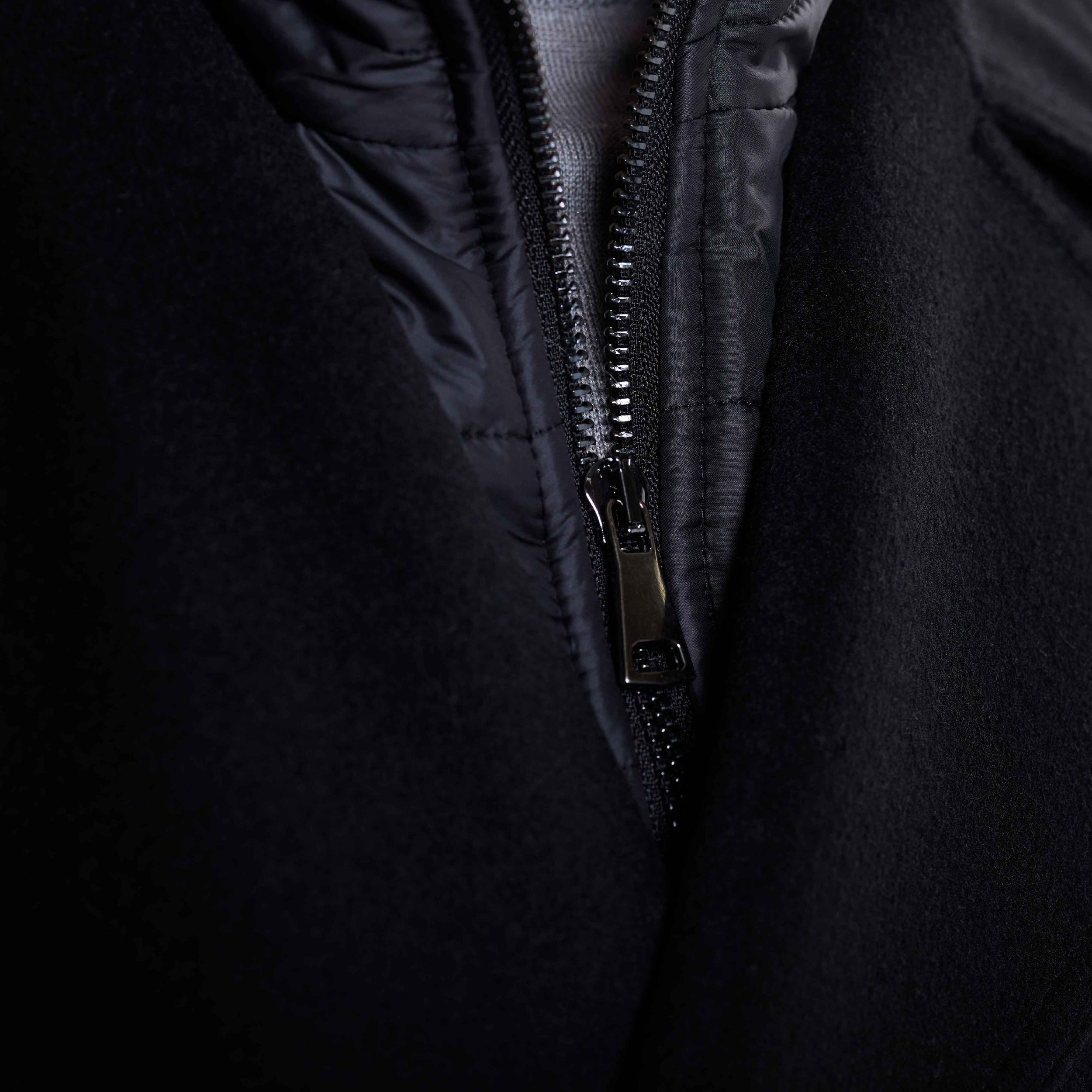 A modern take on the classic peacoat, made in Italy from a luxe wool-cashmere fabric with a detachable nylon quilted bib with high collar and full zip closure. Featuring a double-breasted front, eco-friendly corozo buttons, large notched lapel collar, and angled welt pockets, this fully lined peacoat blends style and functionality.